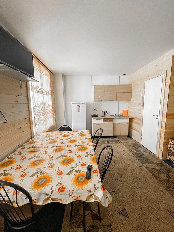 Домики в лесу. Водоснабжение и канализация не как в городских условиях — в домах бойлеры. Просьба принимать это во внимание для вашего комфортного пребывания. Минимально необходимые кухонные принадлежности предусмотрены.