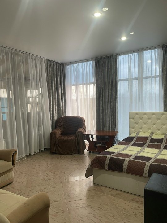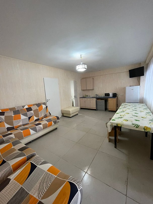 В номере 2 комнаты с 2-х спальными кроватями. Одна комната с 2-х спальной кроватью + диван книжка. В зоне гостиная-кухни располагается диван-книжка.