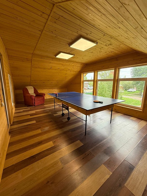 На 1-м этаже доп. услуга – бильярдная комната. На 2-м этаже теннисный стол в стоимости дома. В летнее время можно заказать доп. услугу бассейн для заездов от 2-3 дней.