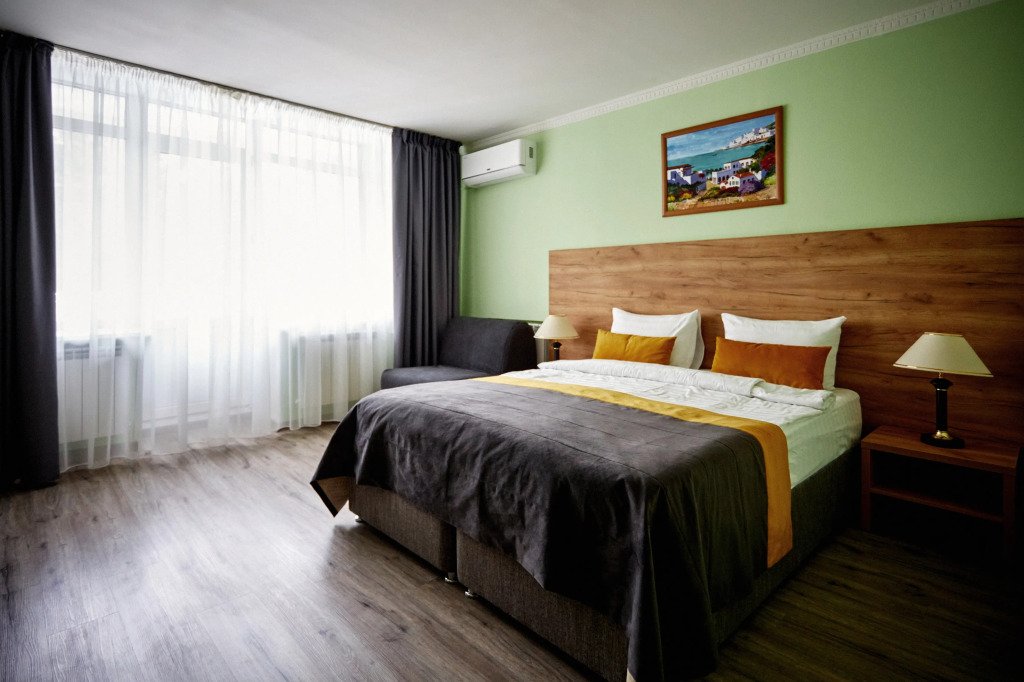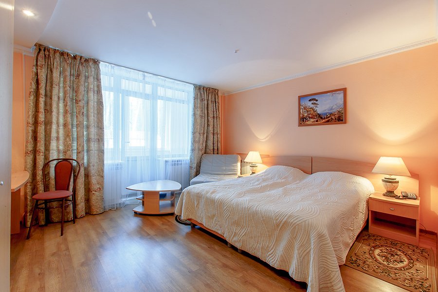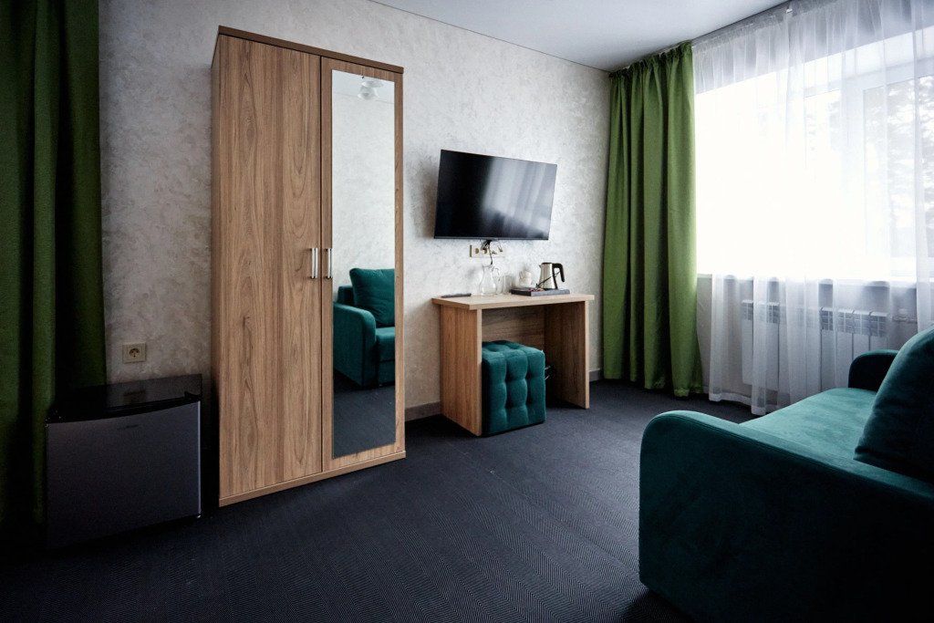Чтобы вы могли отдохнуть после долгого дня, в номере есть телевизор. Оснащение зависит от выбранной категории номера.