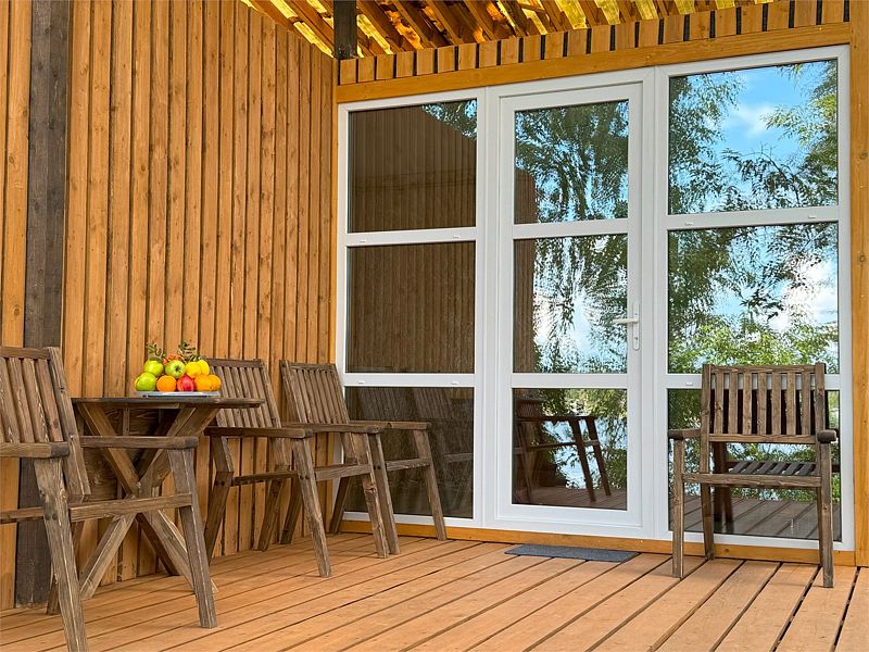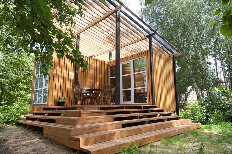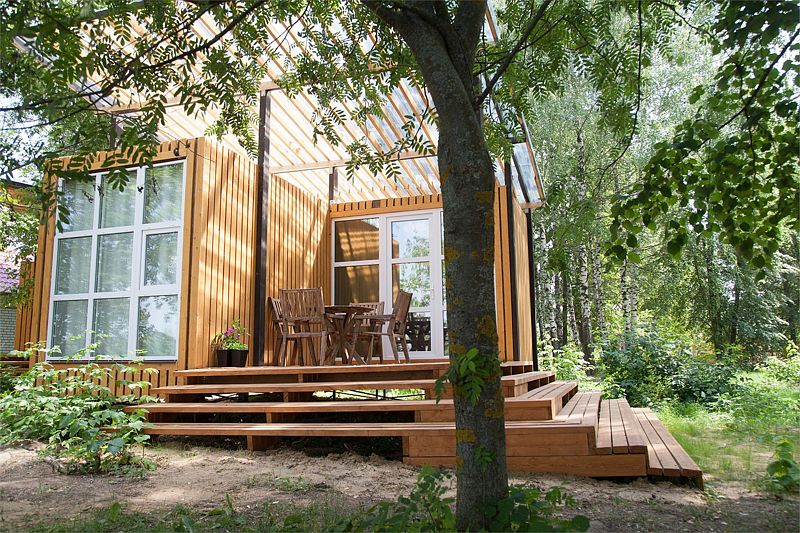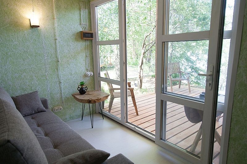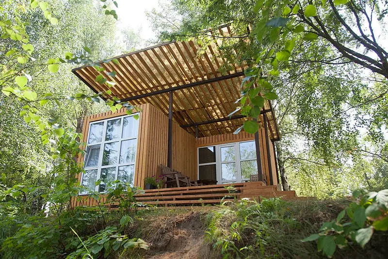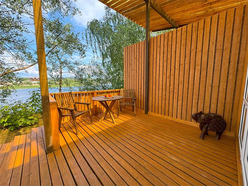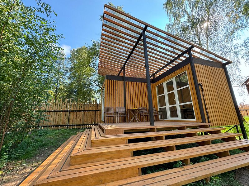 Каждый домик оборудован всем необходимым для комфортного проживания: удобной кроватью, стильной мебелью, верандой с потрясающим видом, санузлом и горячим душем.