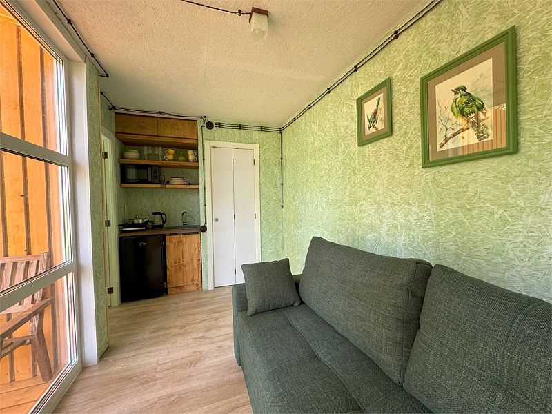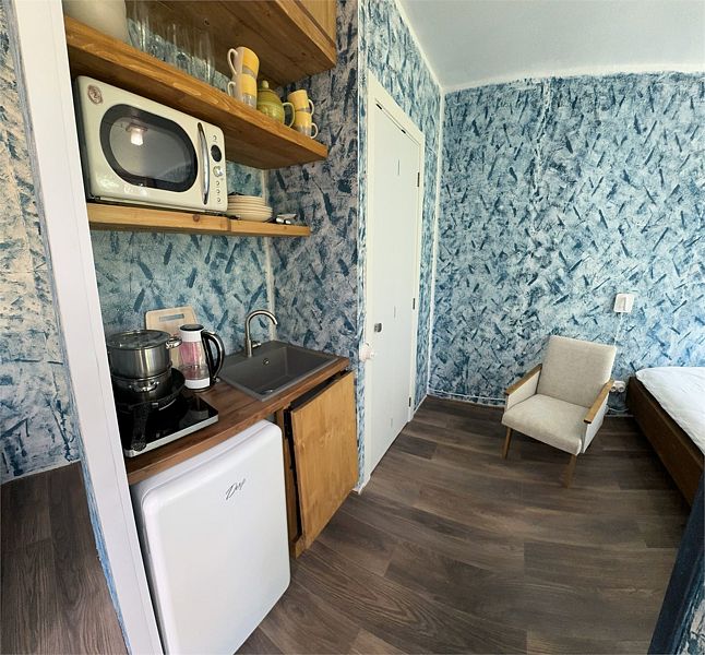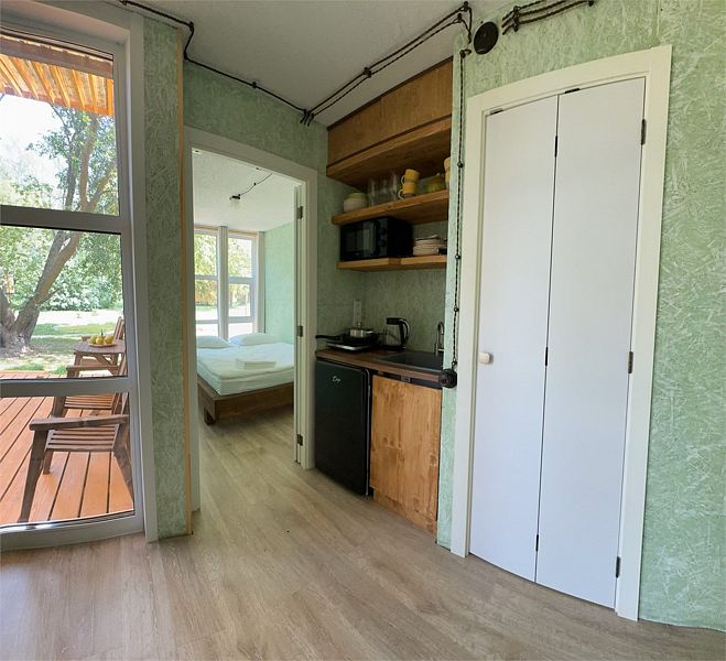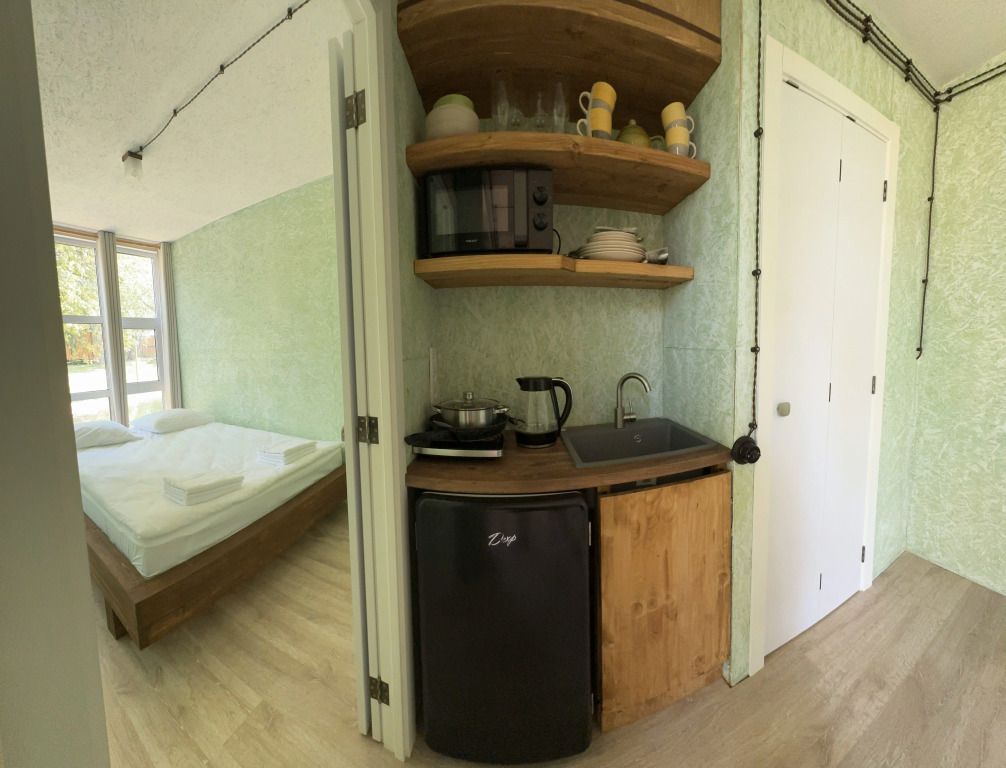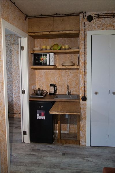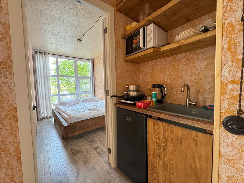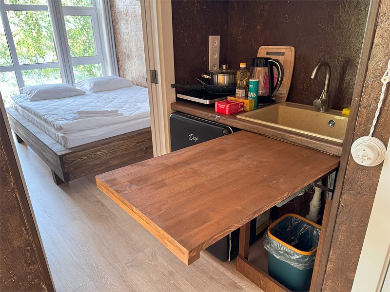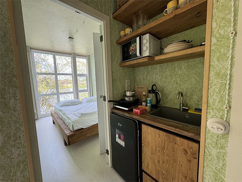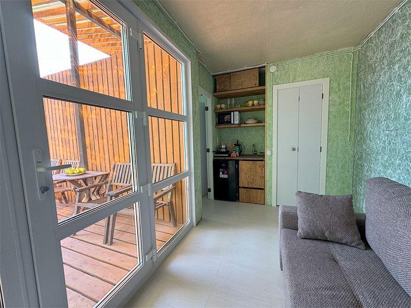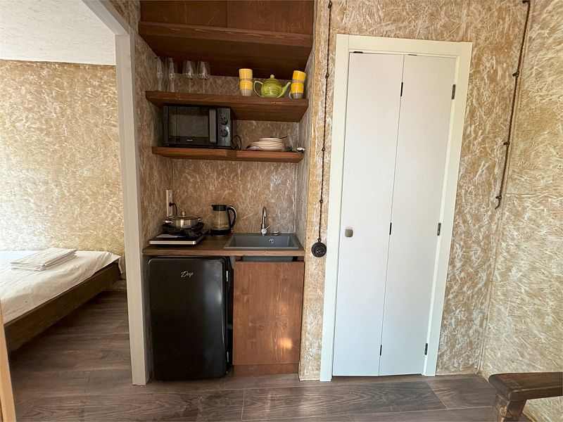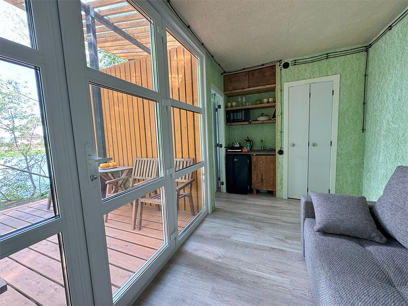 Девять стильных домиков созданы с учетом всех ваших потребностей. Вас ждут мягкие кровати с уютным постельным бельем, современная мебель и стильный интерьер, который создает атмосферу домашнего уюта. Кухня, оснащенная всем необходимым, позволит вам готовить любимые блюда, а наличие отопления сделает вечера по-настоящему теплыми. Санузел с горячим душем и веранда, откуда открываются волшебные виды на живописные пейзажи, создают поистине идеальные условия для отдыха.