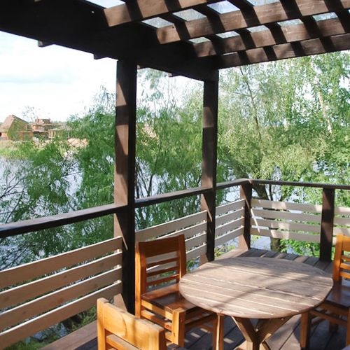 Веранда, расположенная на берегу живописной реки Большая Кокшага, открывает захватывающий вид на Храм Покрова Пресвятой Богородицы, который был возведен в 1793 году. Это место, пропитанное историей и безмятежности, приглашает вас насладиться красотой природы и культурным наследием, слушая тихий шелест воды.