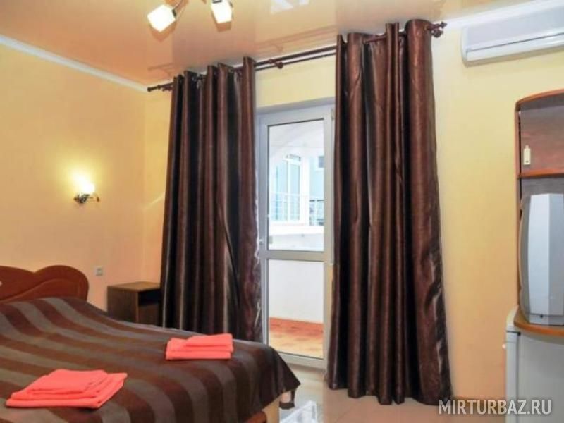 - кондиционер, холодильник, телевизор, спутниковое ТВ, эл. чайник, посуда, интернет, балкон, терраса, вид в сад и двор, санузел с душем.