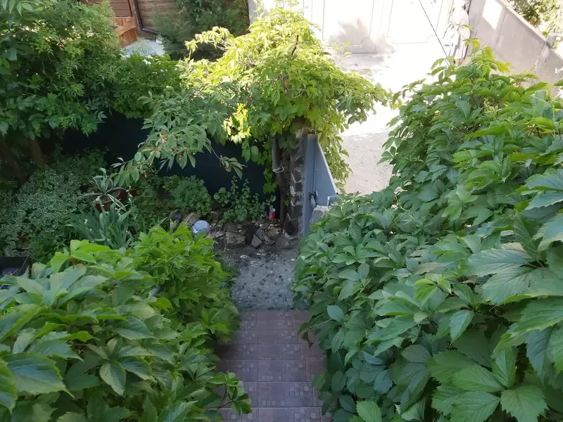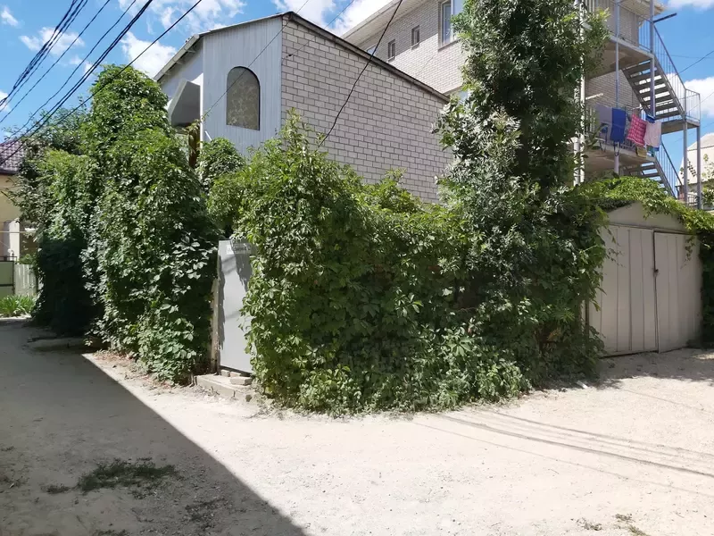 Территория дома огорожена, во дворе имеется кухня с газовой плитой, холодильником, мойкой и посудой, беседка с обеденным столом, скамейками и креслом. У второго этажа есть терраса с мини-кухней. Автомобиль можно оставить в гараже возле дома.