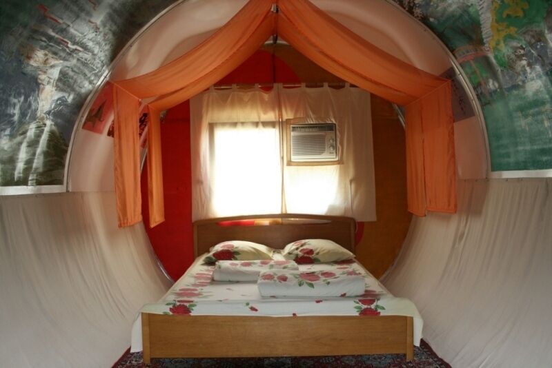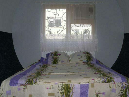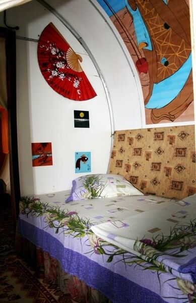 Отдельностоящий 2-3х местный термодомик, оформленный в восточном стиле. В домике двуспальная кровать (140х190 см.) и дополнительное спальное место (90х190 см.).