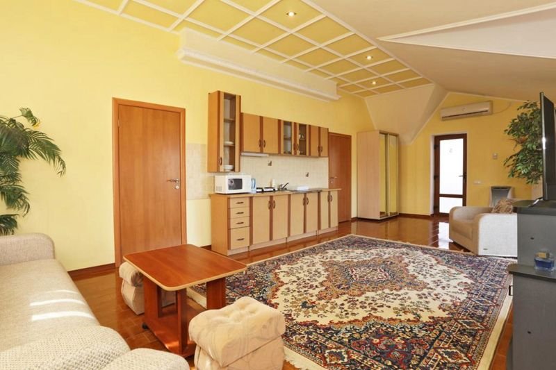 Номер на весь этаж, спальня, детская, кухня, санузел, душ, прихожая, балкон.Услуги и удобства