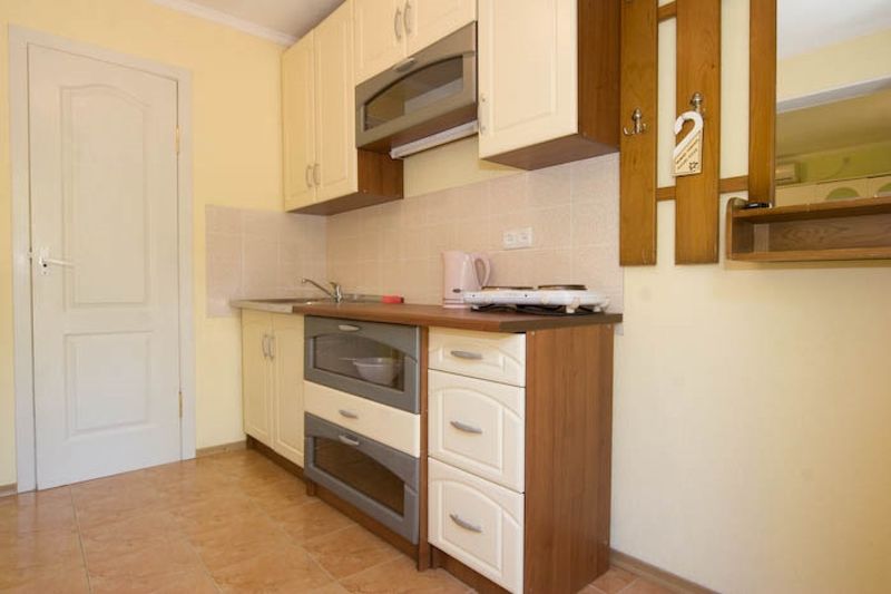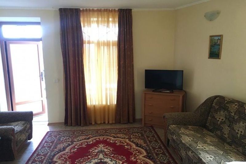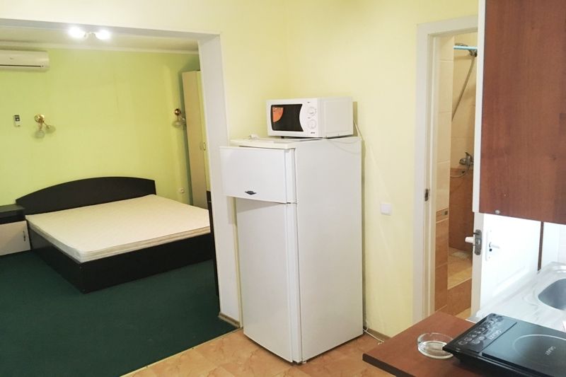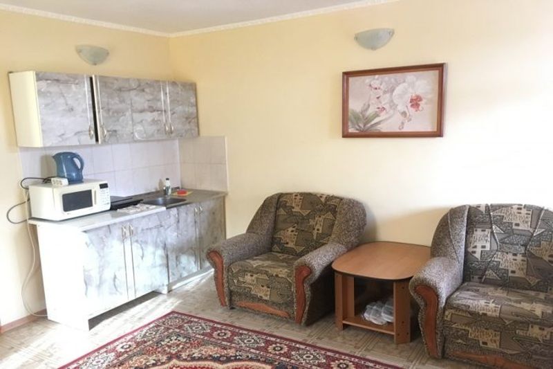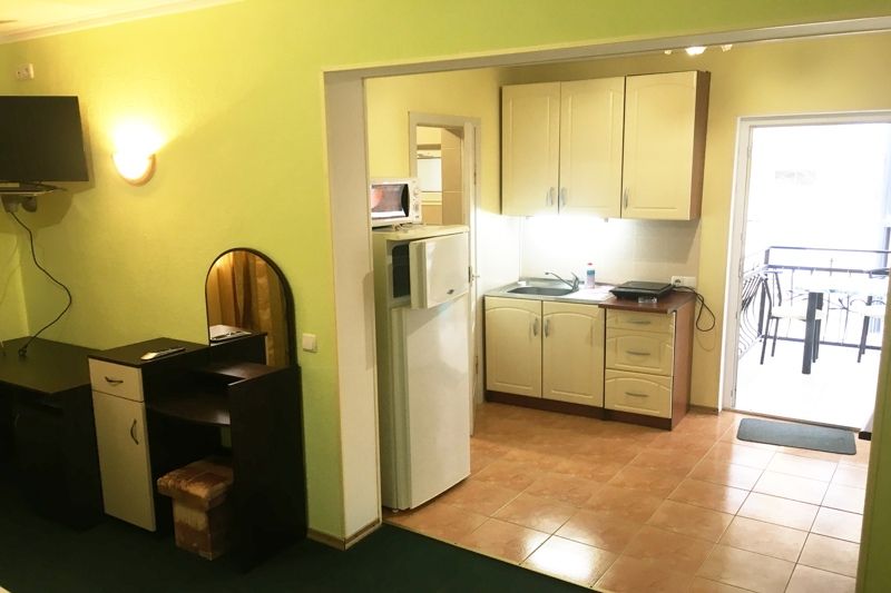 Номер однокомнатный, двуспальная кровать, раздвижное кресло, микроволновка, зона для приготовления кофе, чая, балкон.