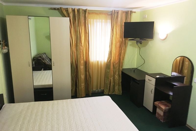 Номер однокомнатный, 3 раздельные кровати, телевизор, зона для приготовления кофе, чая, микроволновка, санузел, душ.