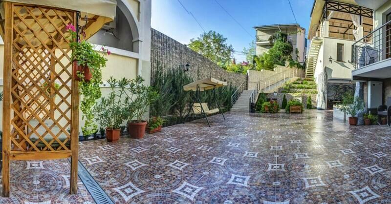 На территории гостевого дома работает кафе, а также для удобства гостей организована общая кухня. Во дворике – уличный бассейн с джакузи, также среди услуг – парковочные места и сеть wi-fi без ограничений.