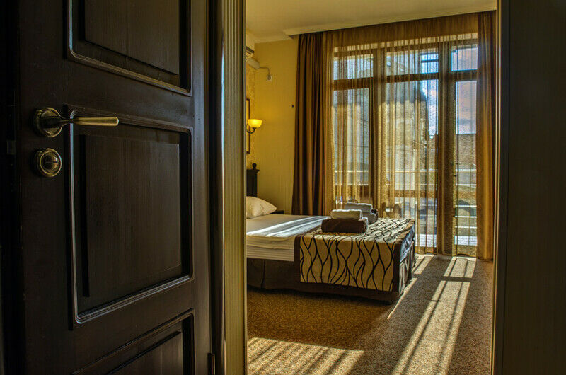 Сам отель представляет из себя четырехэтажный корпус, который разместился на благоустроенной закрытой территории. В распоряжении гостей двухместные комфортабельные номера с большими окнами и меблированными балконами. Каждый номер оснащен всем необходимым для комфортного проживания отдыхающих: есть кондиционер, телевизор с плоским экраном, электрочайник, набор чайной посуды, мини-холодильник. В ванных комнатах отдыхающих ожидают косметические наборы и тапочки.