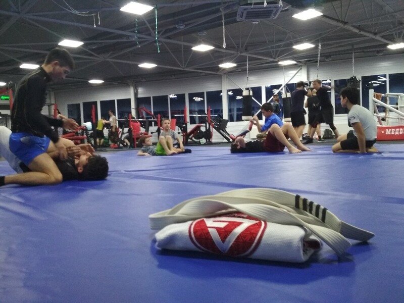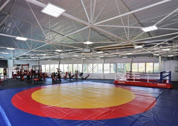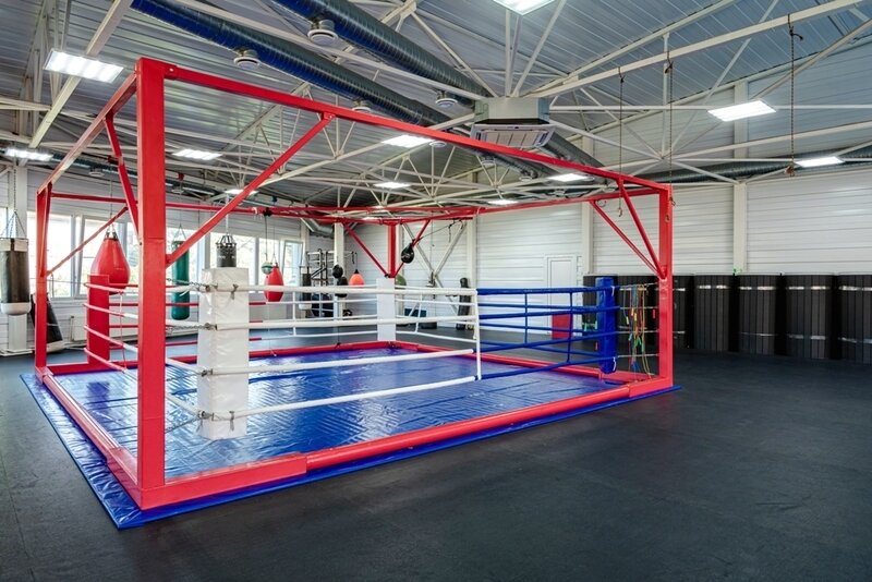 А также боксёрский ринг, мешки и груши, универсальный ковёр для единоборств.