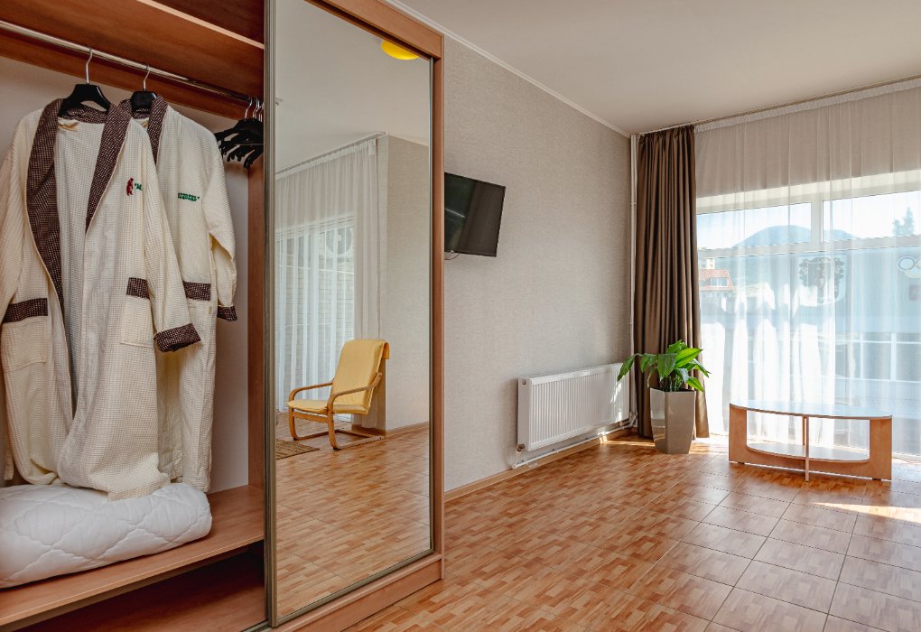 ДостоинстваПрекрасный отель с огромным бассейном и зоной спа. Есть финская и турецкая бани, соляная комната, массаж. Кормят вкусно, подают блюда очень красиво. Номера супер, с балконами. Уборка проводится точно по расписанию, белье меняют раз в 3 дня. Цены отличные, сервис стоит таких денег. Инфраструктура рядом развитая.