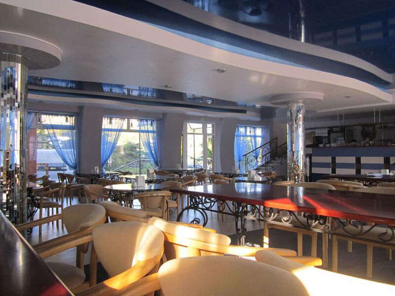 Современный зал на 70 посадочных мест, разнообразие вкусных блюд и приятные цены располагают к проведению праздничных торжеств и мероприятий. К вашим услугам также шашлычная, гриль–меню, бар, возможность комплексного группового питания, детское меню.