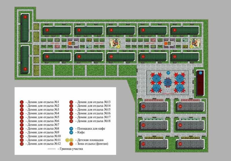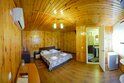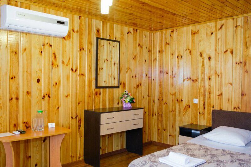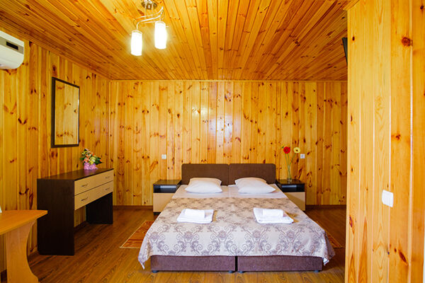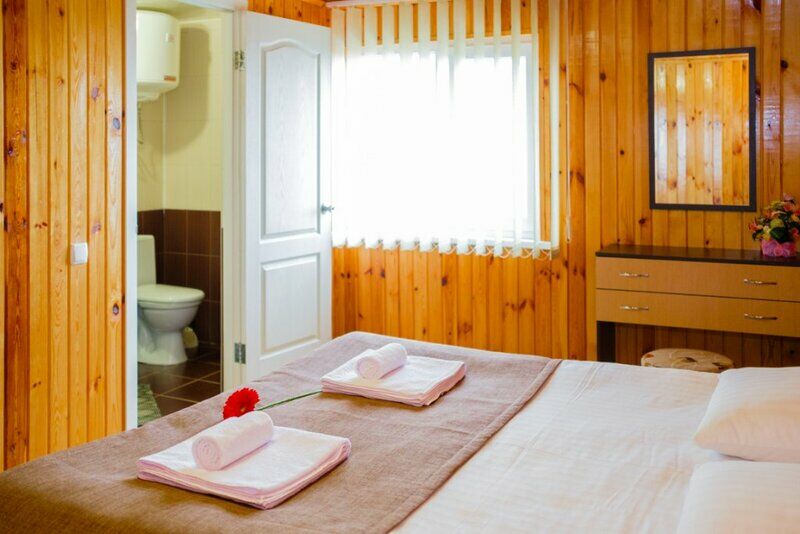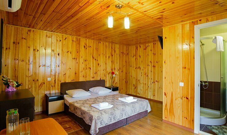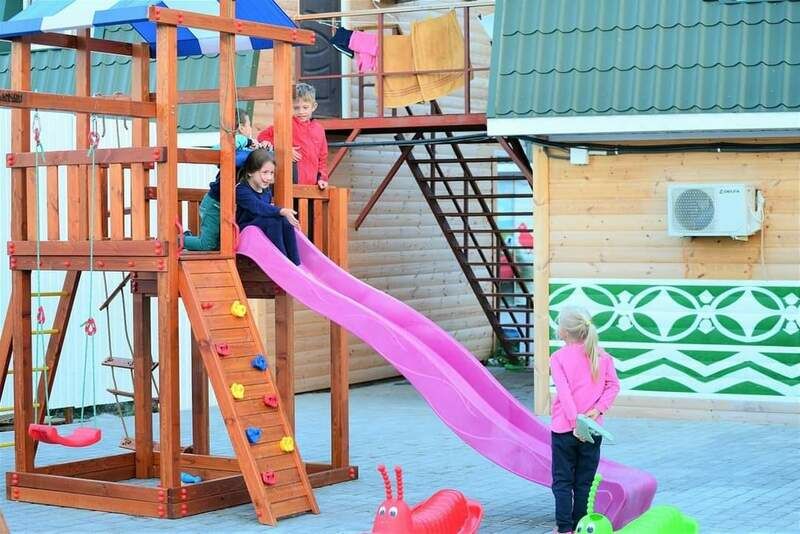 Отель состоит из из 12 двухэтажных деревянных коттеджей с яркими раскрашенными фасадами и занимает благоустроенную территорию площадью 2 гектара в 100 метрах от моря. Отдыхающие могут выбрать разные варианты размещения: простые номера Эконом, комфортабельные Стандарты или просторные двухкомнатные Люксы. В каждой комнате есть собственный санузел, кондиционер, телевизор, мини-холодильник, доступен беспроводной интернет.