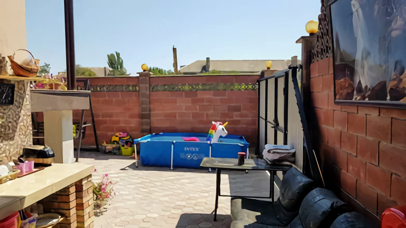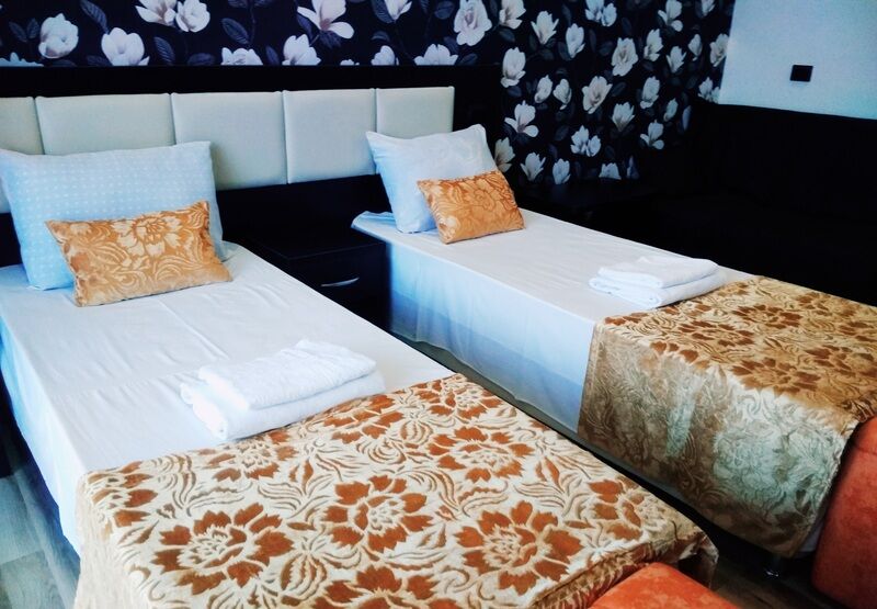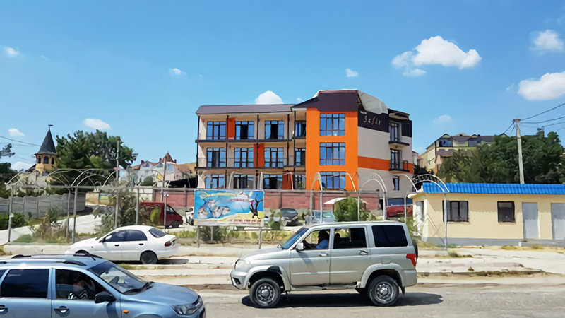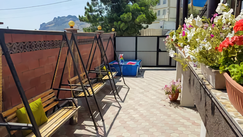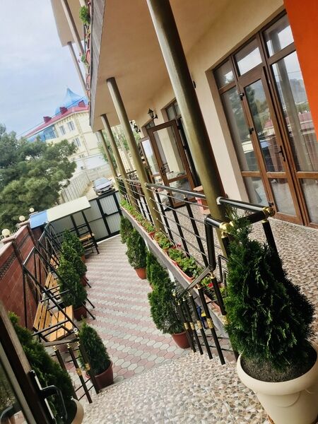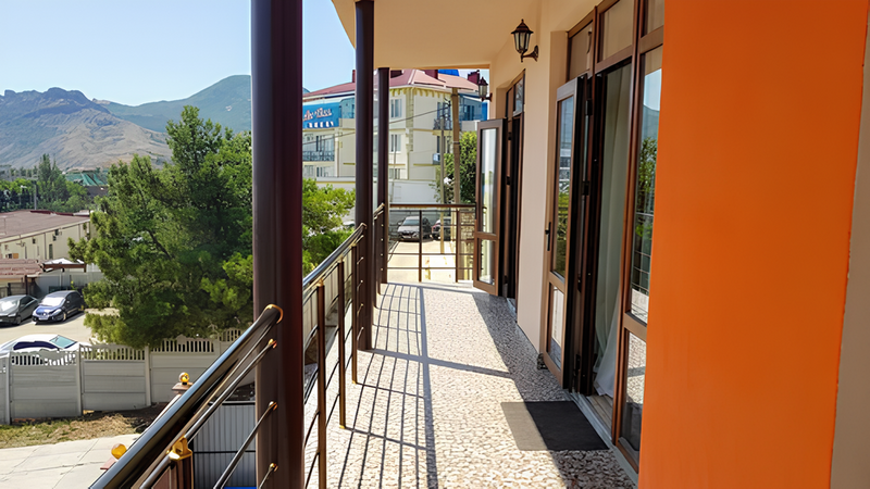 Сам гостевой дом представляет из себя трехэтажный корпус, который разместился на главной улице поселка - улице Ленина. Жилой фонд рассчитан на 66 человек и предлагает двухместные номера Стандарт, в каждом из которых есть индивидуальный санузел, кондиционер, электрочайник и телевизор.