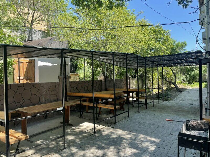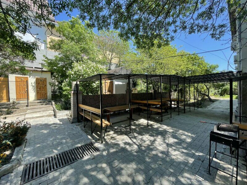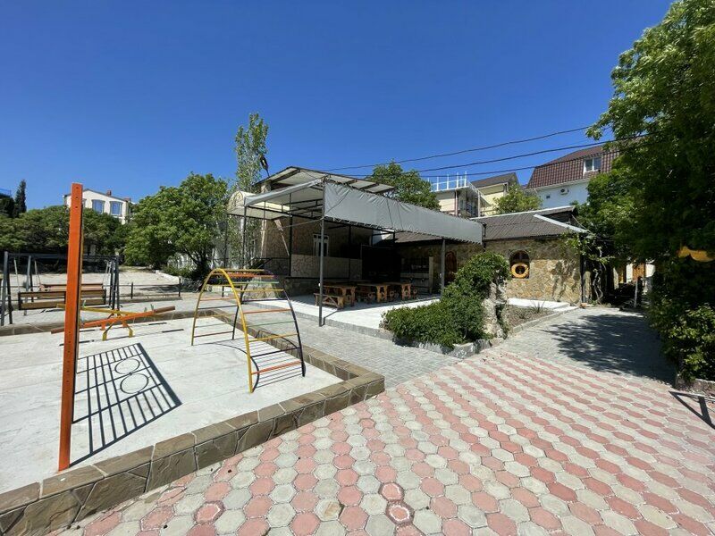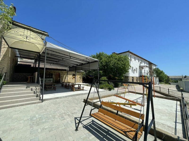 На территории организована небольшая кухонная зона, оборудованная техникой: есть с микроволновки и электроплиты, для любителей шашлыков предусмотрен мангал. Для детей в гостевом доме организована игровая площадка с качелями, а автовладельцы смогут оставить свою машину на крытой охраняемой парковке.