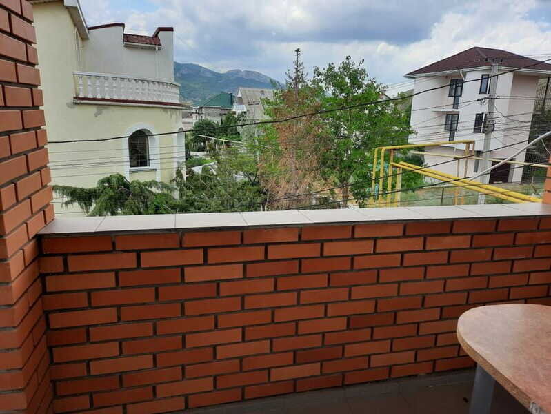 Вид из номеров выходит на внутренний двор или коттеджи поселка, утопающие в зелени, и горы Кара-Даг.
