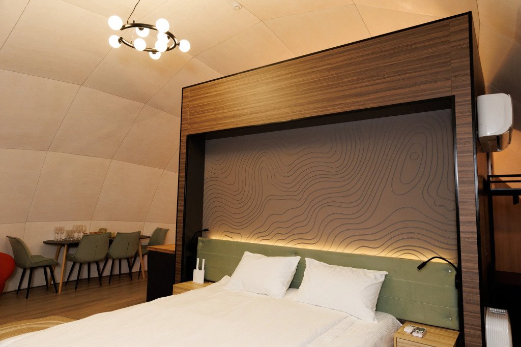 Двухместный семейный коттедж с красивым видом из окна двуспальная кровать