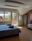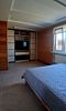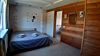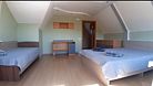 На первом этаже санузел, кухонная зона, комната с двуспальной кроватью. На втором этаже двуспальная и односпальная кровати.