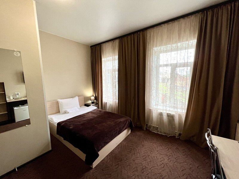 Однокомнатный номер с односпальной кроватью размером 90*200 и площадью около 18 м2. В номере есть холодильник, плазменный ТВ с функцией Smart, Wi-Fi, графин для воды/чашки. В ванной комнате установлена душевая кабина, имеются средства личной гигиены.