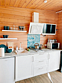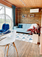 Дом выполнен в голубо-синих тонах, с креслом-коконом в гостиной. Рассчитан максимум на 4 гостей, пятым может быть малыш, которому или не предоставляется отдельное спальное место, или возможно размещение в кроватке-манеже (за доп. плату).