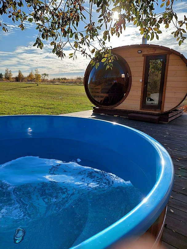 Инфраструктура: купель, полотенца, простыни, дубовые веники, березовые веникиМинимальное время аренды: 2 часаРусская баня-бочка на дровах с панорамным круглым окном.