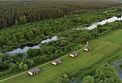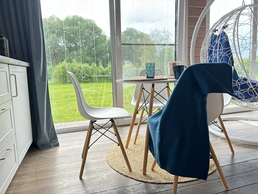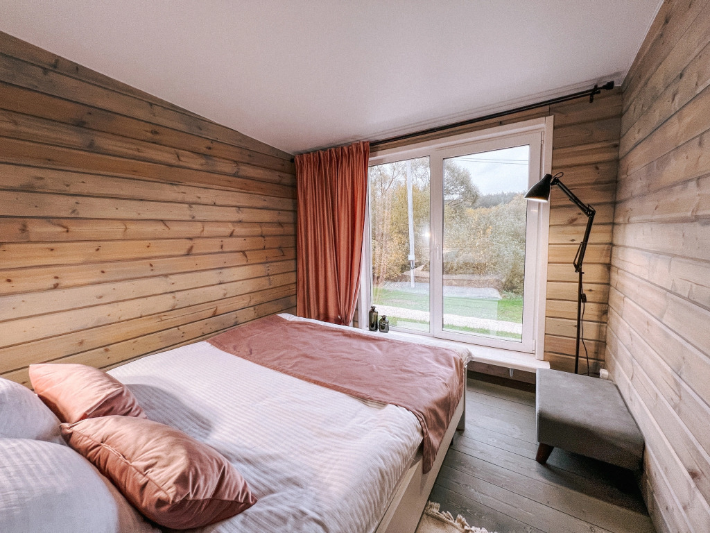 Каждый дом с панорамными окнами располагает спальней, кухней-гостиной, ванной комнатой, прихожей и уютной верандой с потрясающим видом на окружающие угодья. Дома расположены на расстоянии 20 метров друг от друга, обеспечивая уединение и спокойствие.