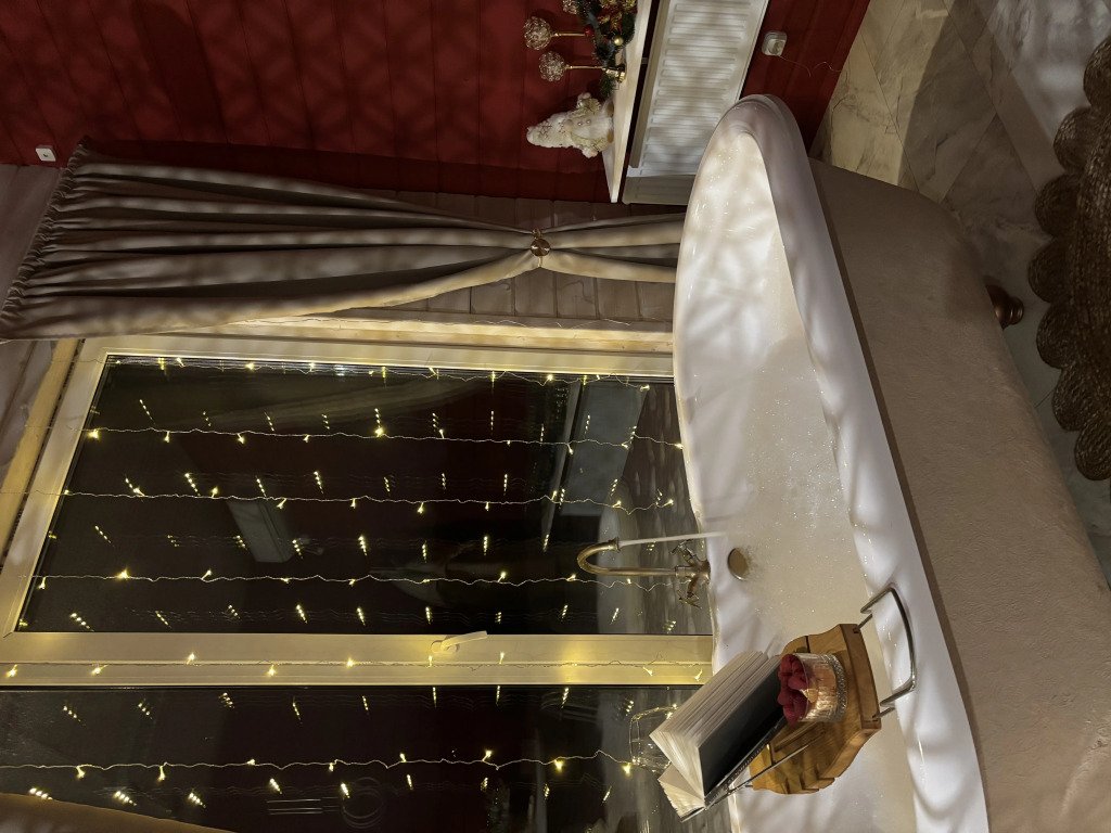 Ванна у панорамного окна, халаты, проектор, красивые интерьеры и посуда и многое другое для личных праздников и отдыха.
