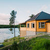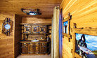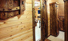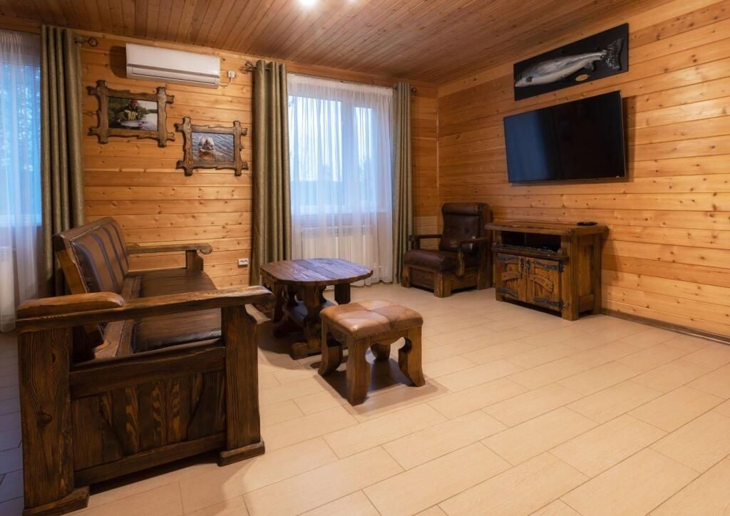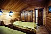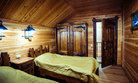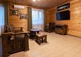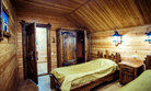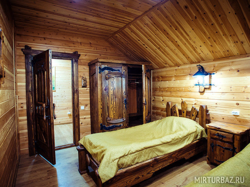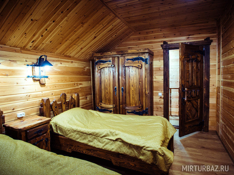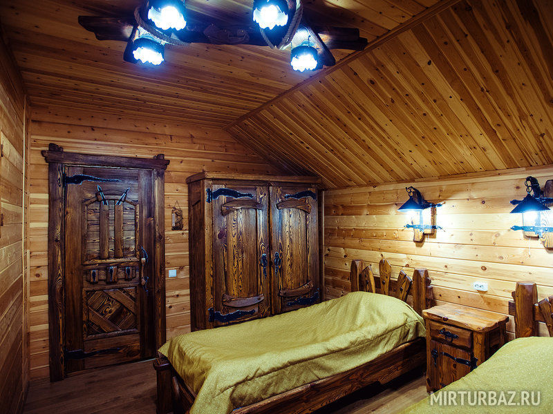 В двухэтажных домах предусмотрена уютная гостиная с настоящим камином на дровах, мягкая мебель, буфет и широкоформатные телевизоры со спутниковым телевидением. На втором этаже располагаются две спальни.