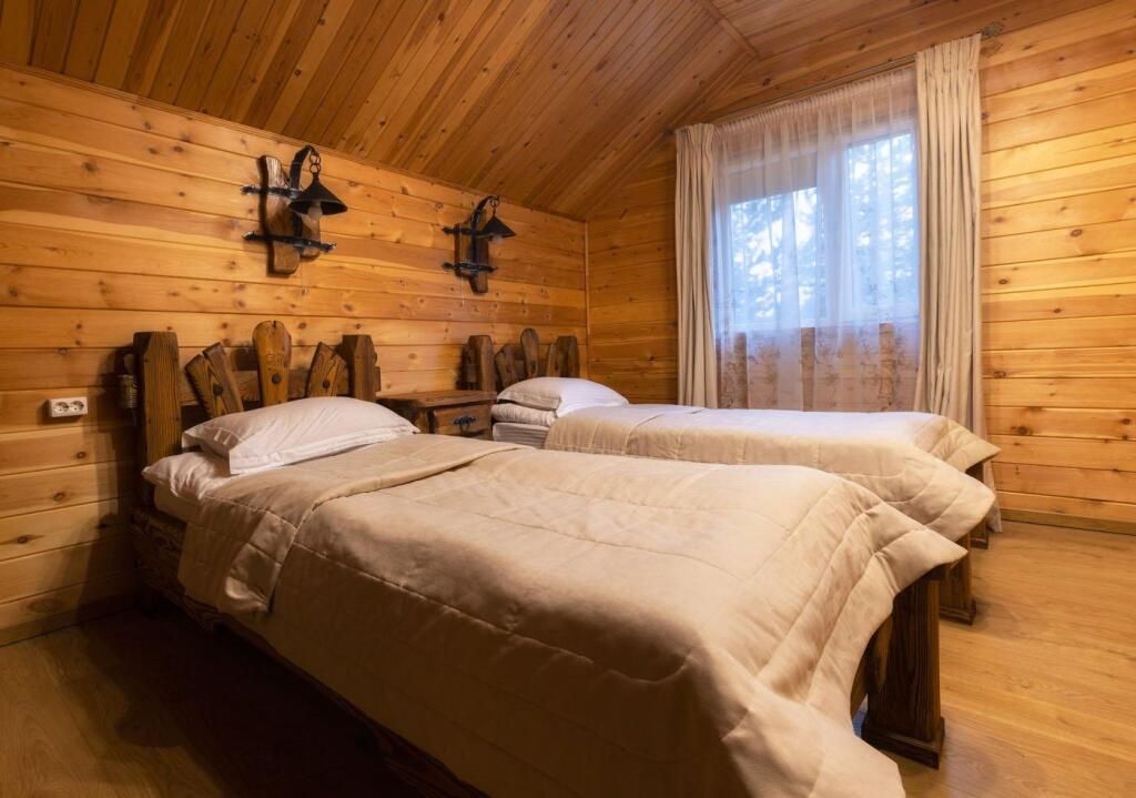 В двухместных домиках вы найдете две полутороспальные кровати либо одну двуспальную кровать. В домах имеются прикроватные тумбочки, шкаф с вешалками для одежды, стол, стулья, телевизор, санузел с раковиной и душевой комнатой, постоянное наличие горячей воды, пол с подогревом и непрерывное отопление. Все дома обустроены необходимыми удобствами, поддерживаются в отличном состоянии, чистоте и порядке.