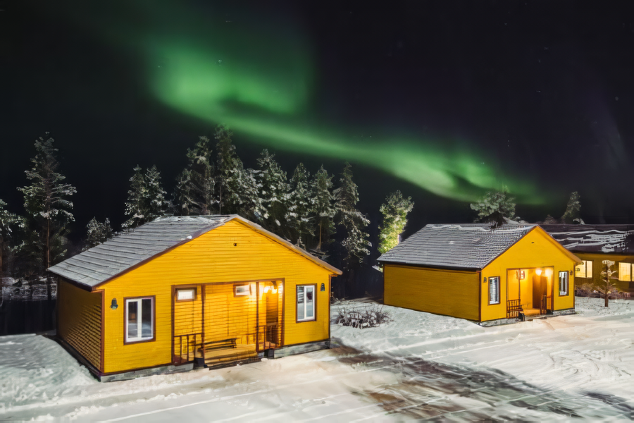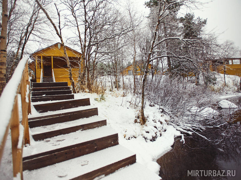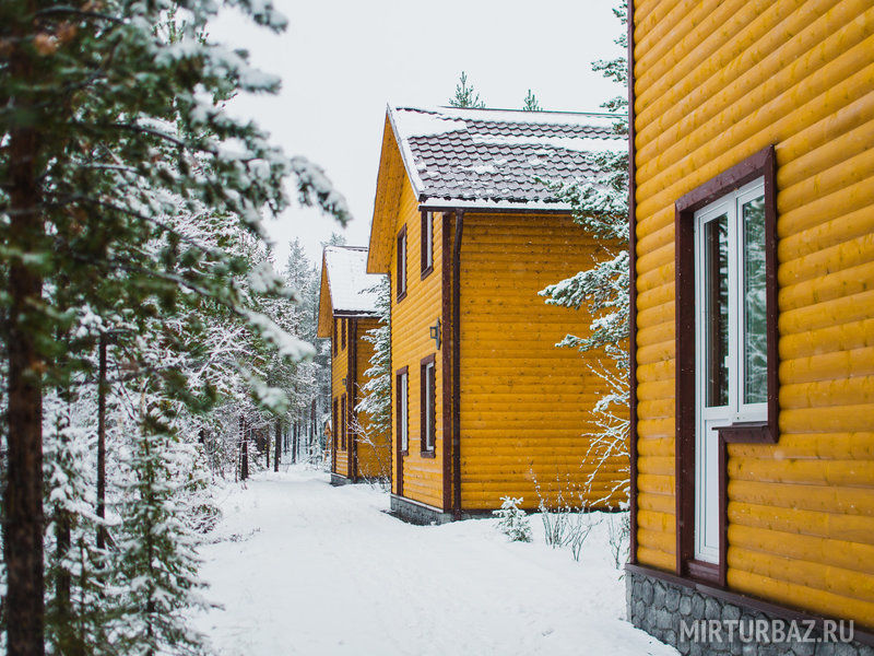 Турбаза представляет собой комплекс из 12 двухместных домиков с удобствами (душ, туалет, электрообогрев, горячая вода, шкаф для вещей, спальные принадлежности, предметы личной гигиены) и 3 двухэтажных домов вместимостью до 4 человека.