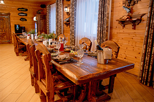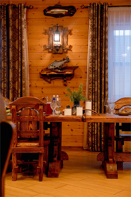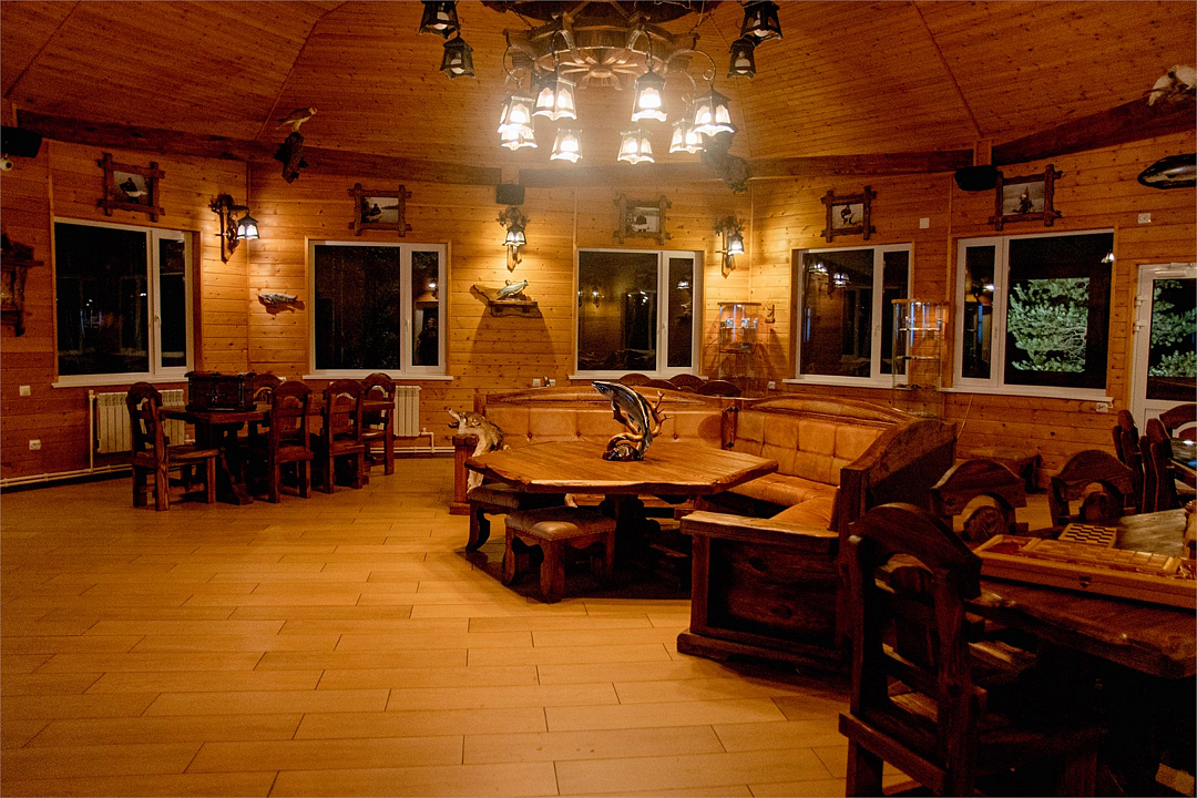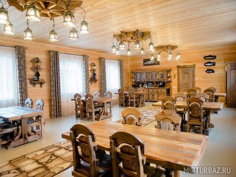 Предлагается 3-разовое питание, состоящее из разнообразных блюд традиционной русской кухни. Завтрак, обед, ужин в уютном обеденном зале (отдельный корпус). Предусмотрен обед на реке при организации рыболовного тура.