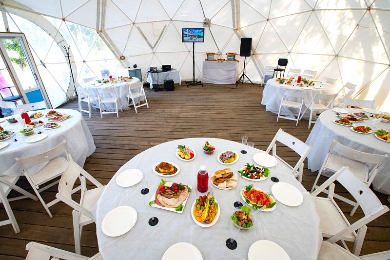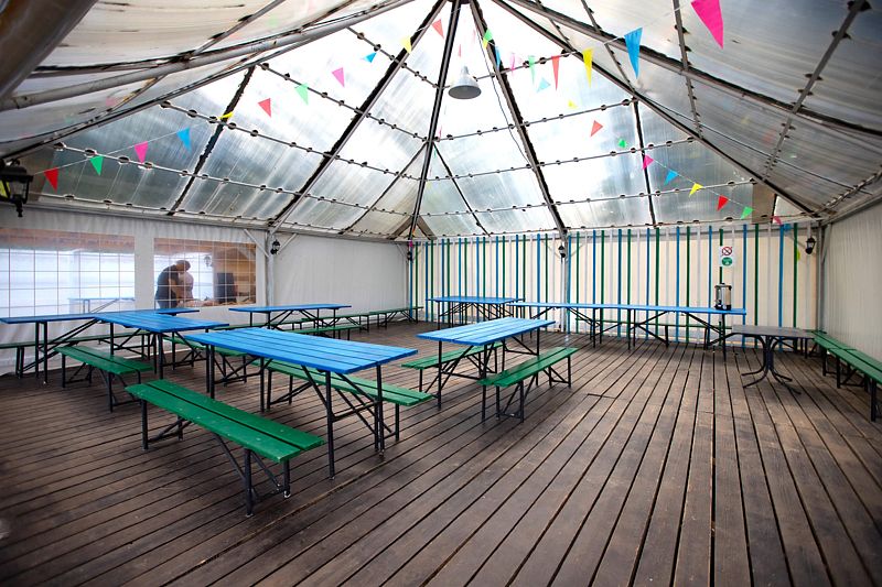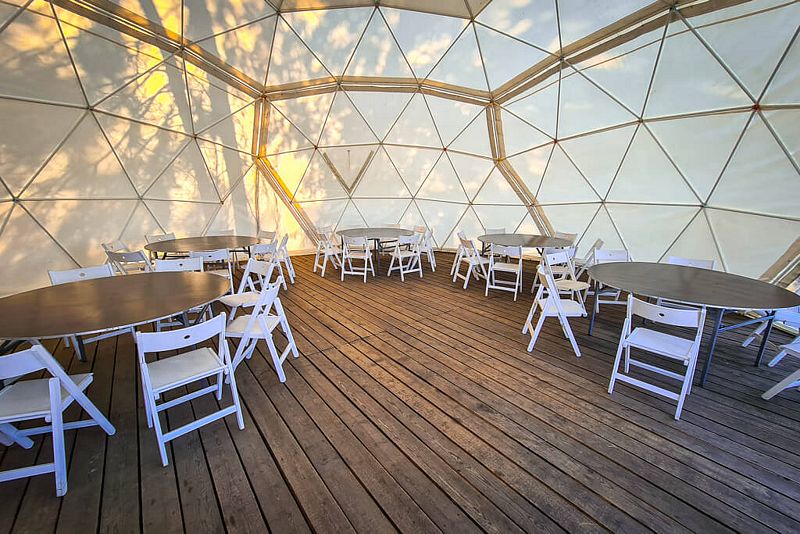 - Площадь шатра 100 кв. м, площадь шатра с террасой 225 кв. м.
