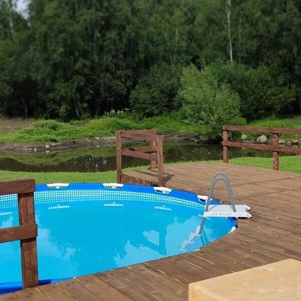 Сезонный бассейн начинает работать 1 июня, нагревается естественным путем.