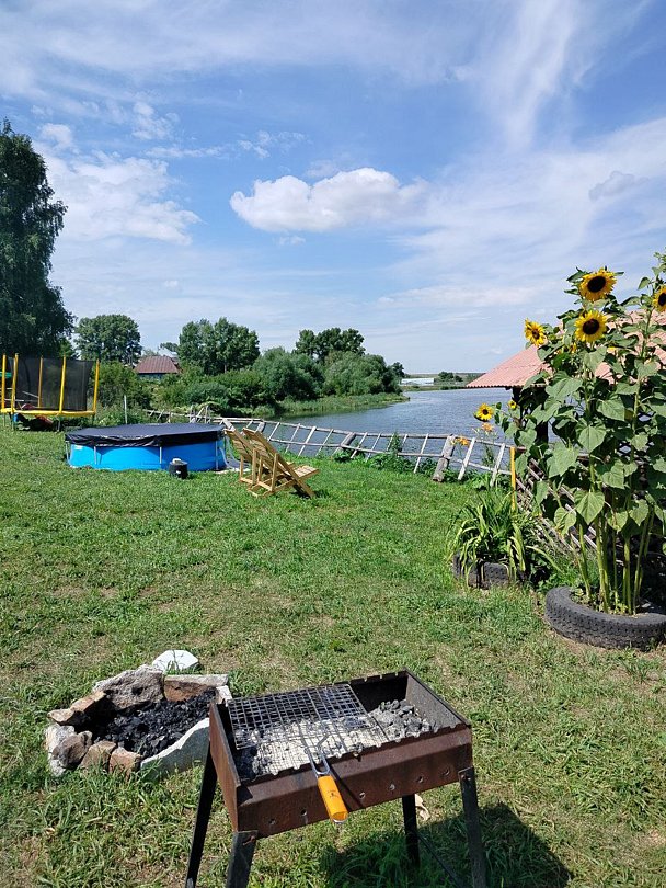 Помимо этого, на территории имеются беседки с мангалом, а в шаговой доступности есть продуктовый магазин. Кроме того, к Вашим услугам бассейн, батут и качели, баня, теплый летний душ. Желающие могут порыбачить на пруду как с пирса, так и с лодок. Удочки можно взять бесплатно.