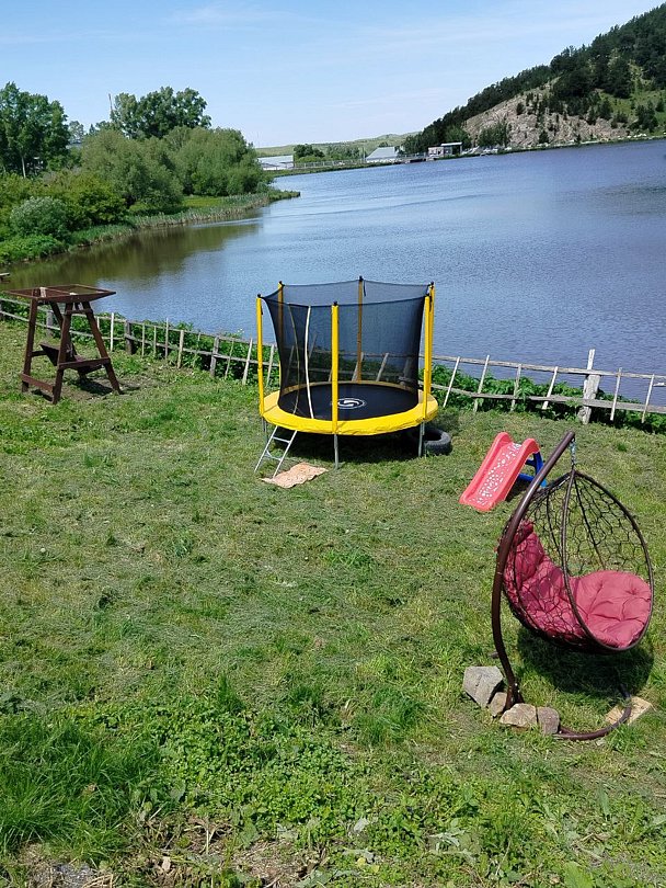 Отдых с друзьямиДостоинстваНесмотря на то, что база находится практически на дороге, что несколько мешает ночью, но прекрасный внутренний на двор на берегу пруда с детской площадкой (качели, бассейн, батут) и отдельными зонами отдыха для постояльцев - оставляют хорошее впечатление. Привлекательности добавляют: возможность рыбалки и катания на сапе; в пяти минутах ходьбы музейные объекты камнерезного дела; рядом магазины; поездка на озеро Белое с прекраснвм песчаным дном и прозрачною водой займет 10 минут на машине. Это мместо можно смело рекомендовать для отдыха и семьей и компанией. Хозяева приветливые и радушные.