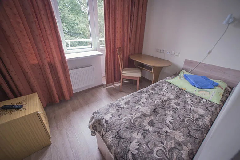 Одноместный номер Одна кровать 80 см Телевизор Шкаф Тумбочка Стол Туалетные принадлежности ПолотенцаУслуги и удобства