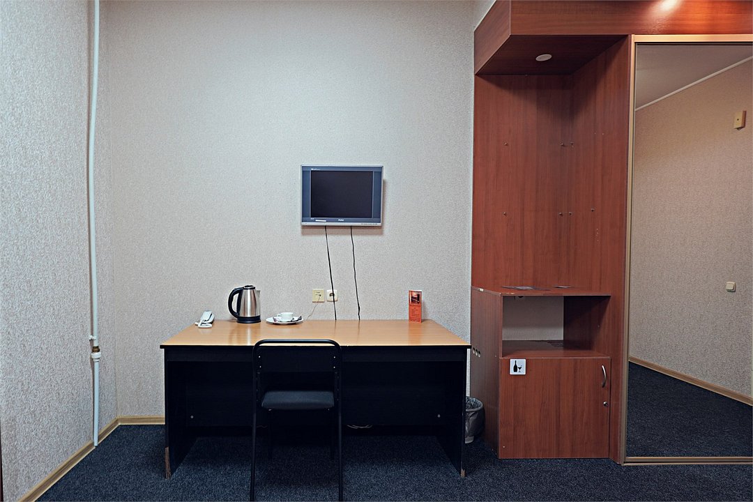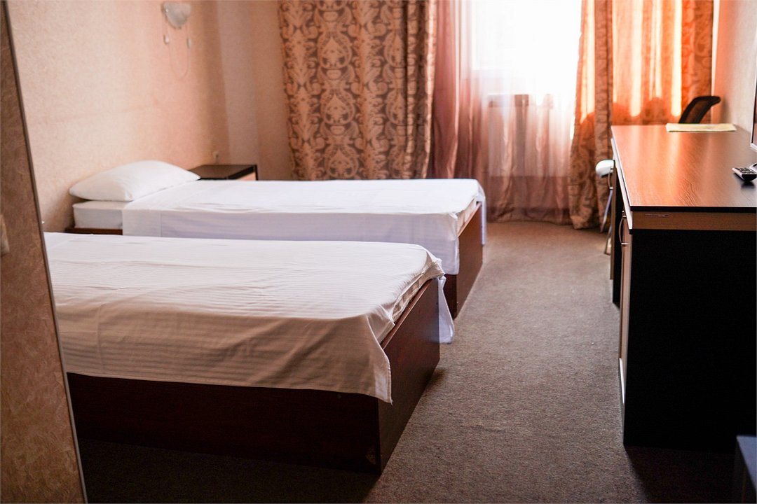 телевизор, Wi-Fi, кондиционер, ванна или душевая кабина, косметические средства, две односпальные кровати, шкаф для одежды, зеркало, вид на город, кулер на этаже, вид во двор, стул, туалетные средства, туалет, рабочий стол, без питомцевВ гостиничном номере