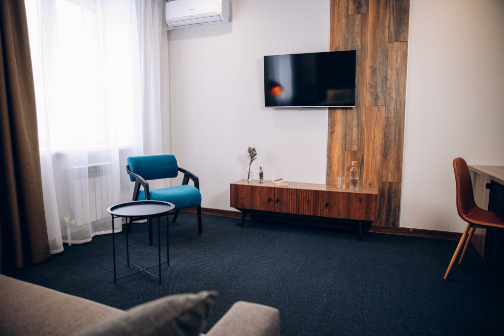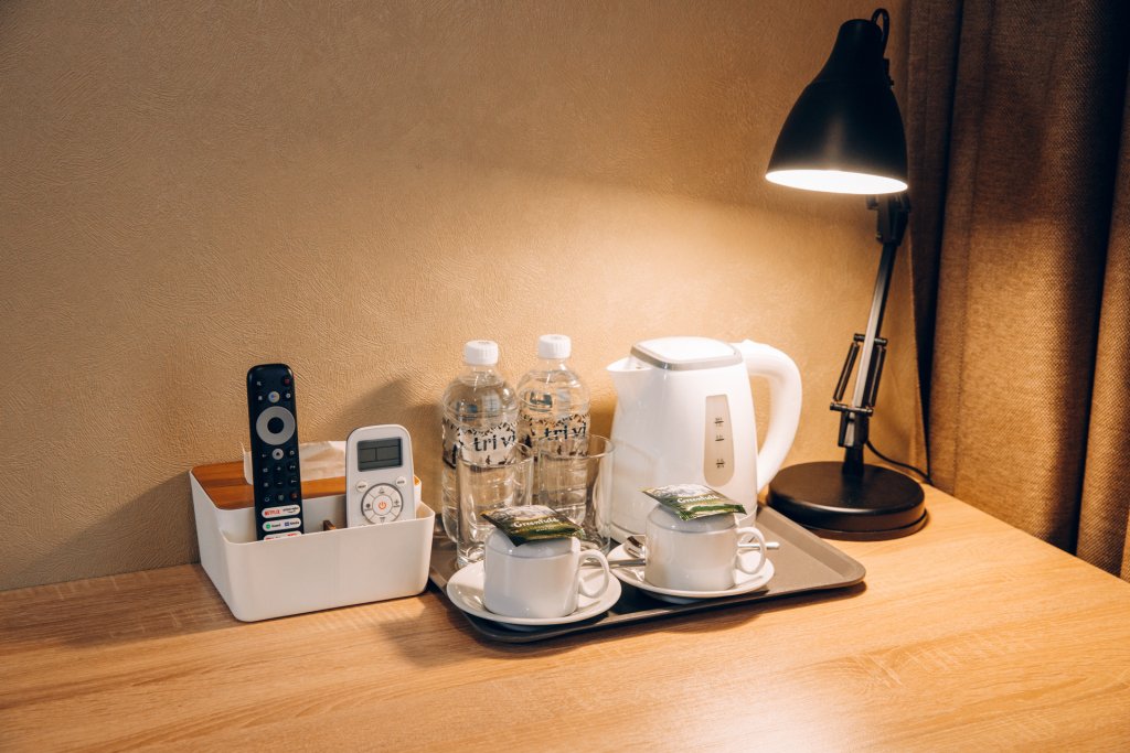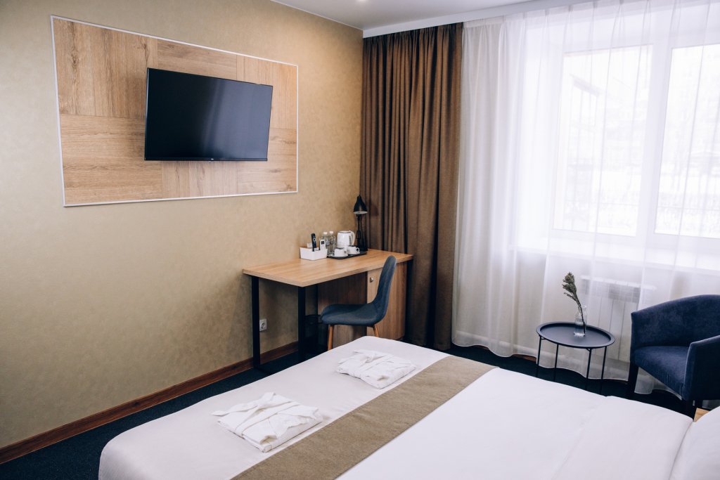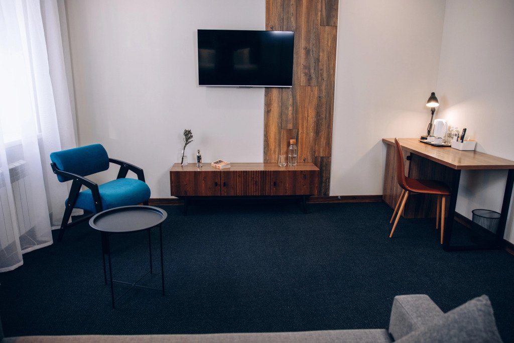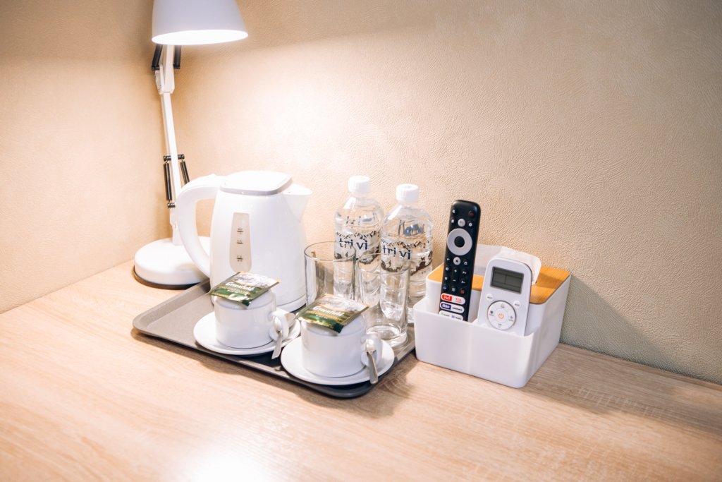 В номере вы найдёте телевизор. Оснащение зависит от выбранной категории номера.