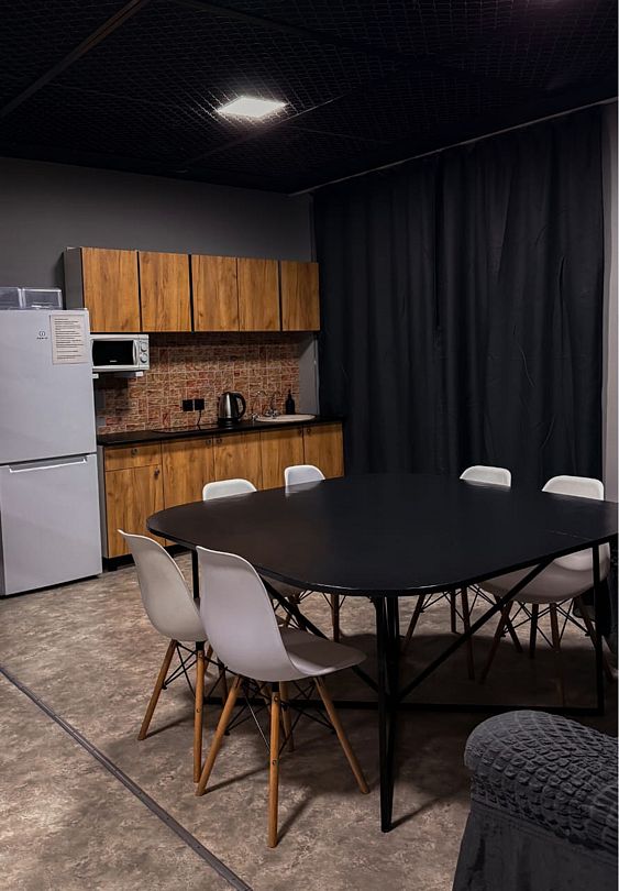 В доме есть всё необходимое для комфортного пребывания и развлечения: кухня, санузел, зона отдыха с телевизором и приставкой, финская сауна для расслабления, караоке зал для любителей пения, теннисный стол и бильярд для активного досуга, а также особая красная комната.