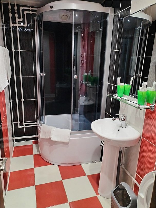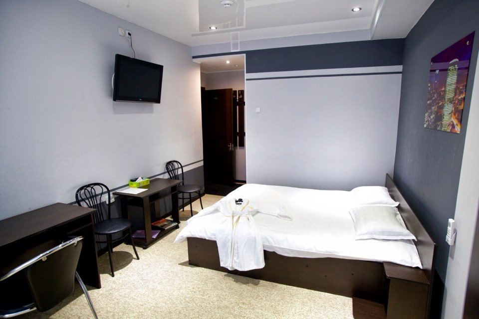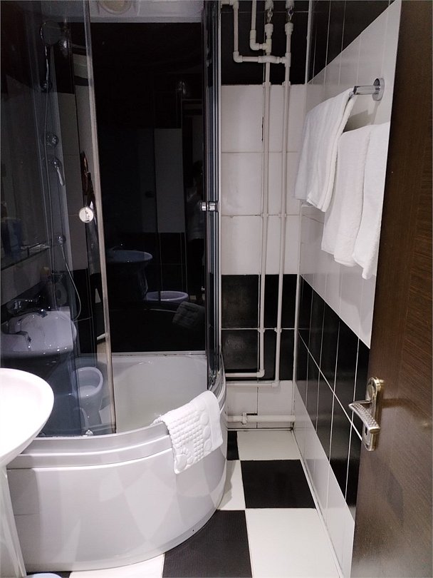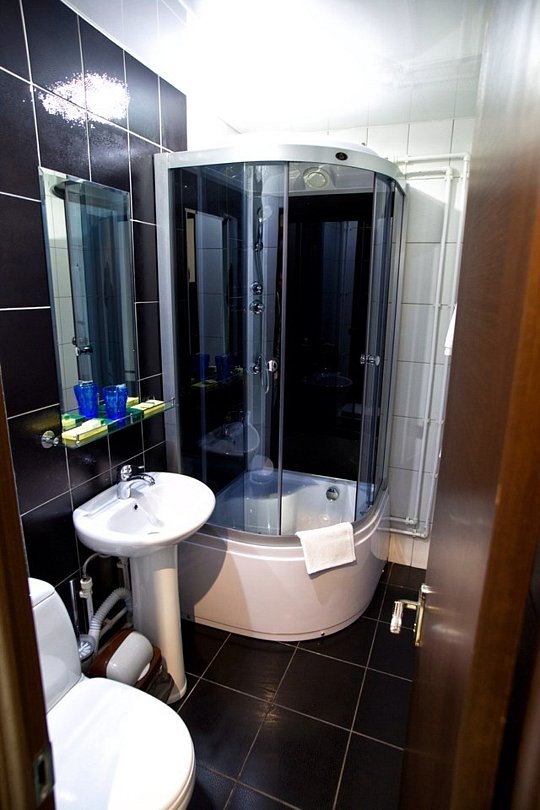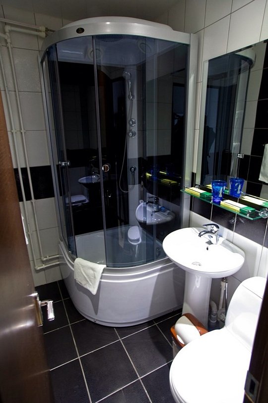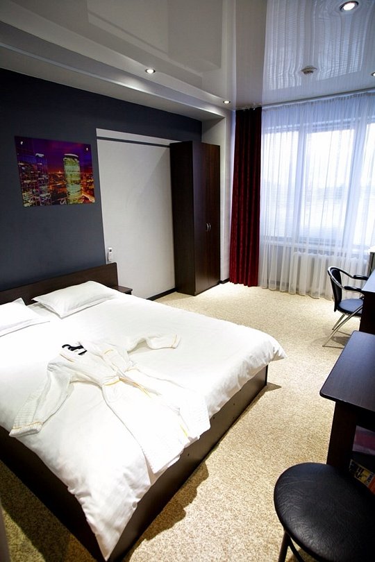 В номере: Двуспальная кровать — 200 х 160 см. , письменный стол, шкаф д/одежды, тумба , холодильник, чайник, Совмещённый санузел (душевая кабина) , Беспроводной доступ в Интернет — Wi-Fi Кабельное телевидение с большим выбором каналов, набор для ванной: зубная щетка с пастой, набор д/бритья, швейный набор, косметический набор, мыло, шампунь, гель для душа, тапочки, вода бутилированная, чай, кофе, сахар.Услуги и удобства