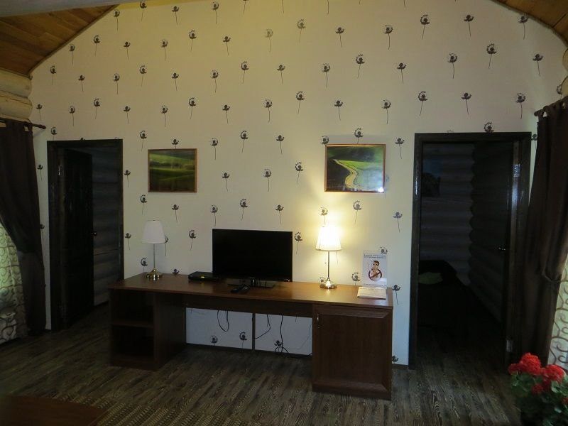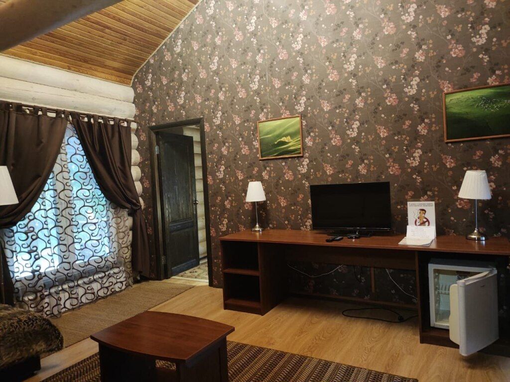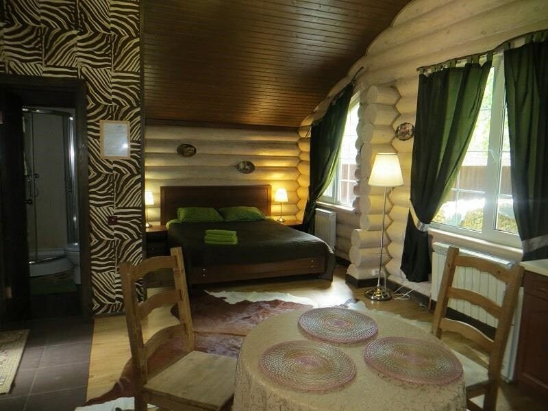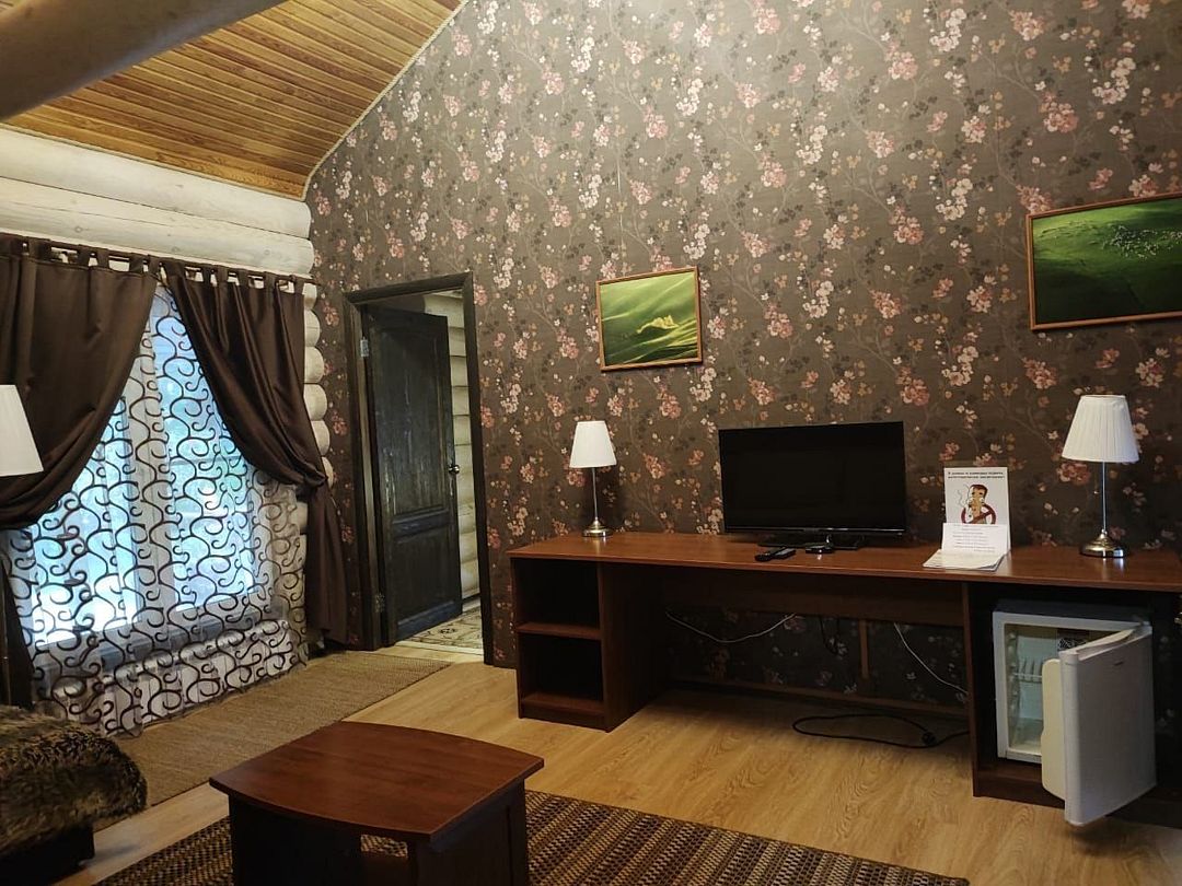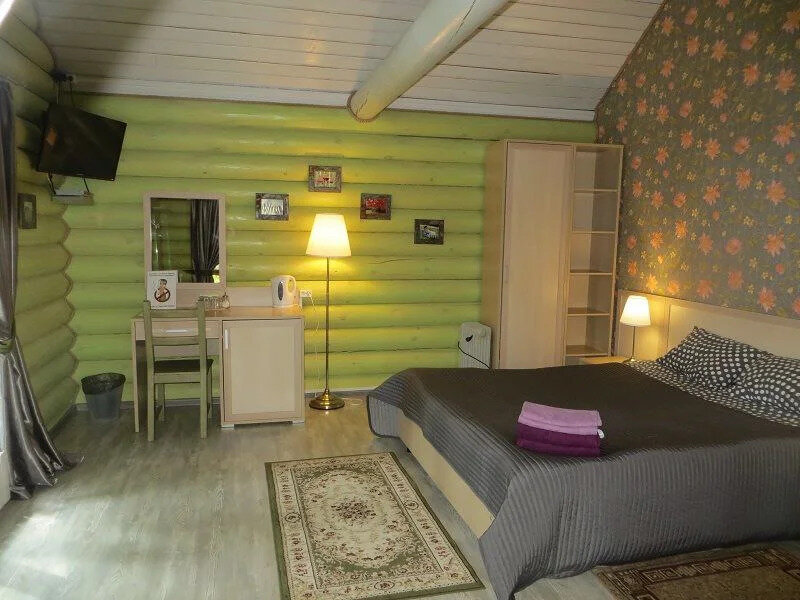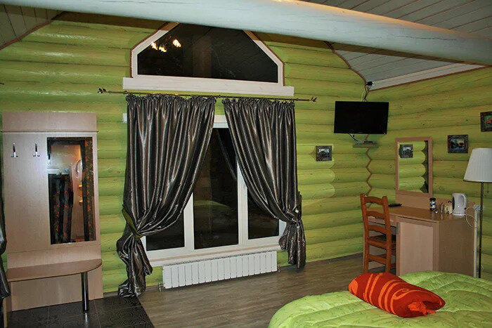 Изба представляет собой большой деревянный дом с комфортабельными изолированными номерами с французскими балконами и панорамными окнами, где постояльцы чувствуют себя спокойно и уединенно. Размещение в номерах – 2 человека, в некоторых возможны дополнительные спальные места.