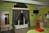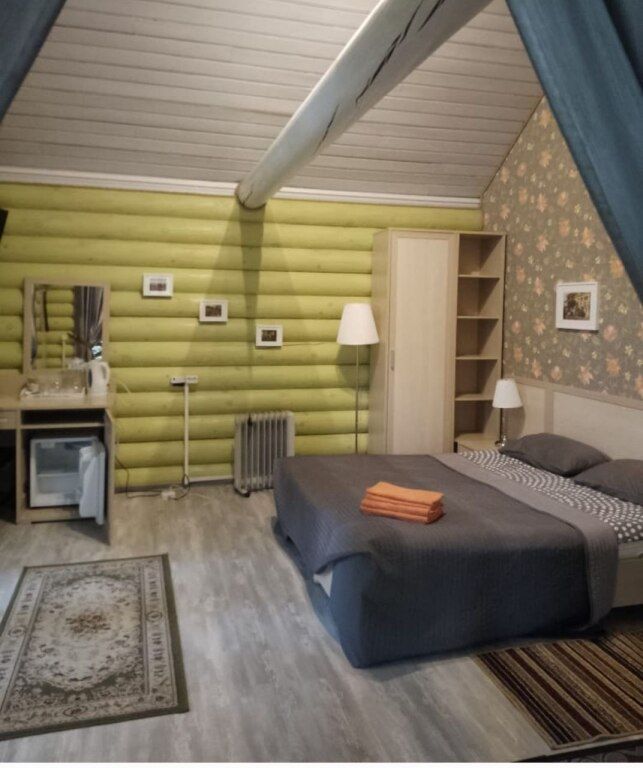 Изба «Опочивальня» — это пять современных комфортабельных номеров с изящными французскими балконами и панорамными окнами. Все номера находятся на втором этаже административного корпуса нашего Клуба, а на первом этаже расположен ресторан «Изба Трапезная», в котором вас всегда ждет взрослое, детское меню и бар! В номера сделан отдельный вход по деревянной лестнице через веранду ресторана.