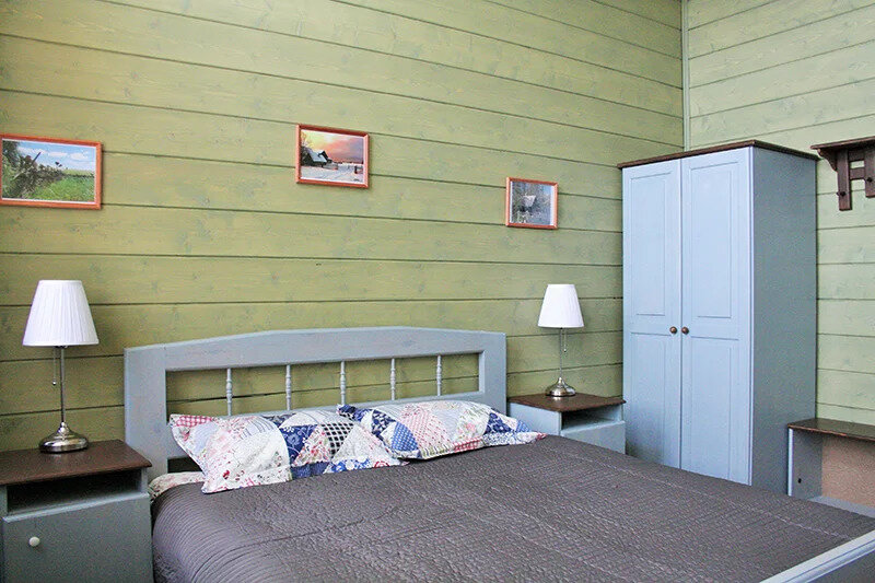 - Номер 3 — 16 кв.м., 1 двуспальная кровать, 2 тумбочки, шкаф-гардероб,