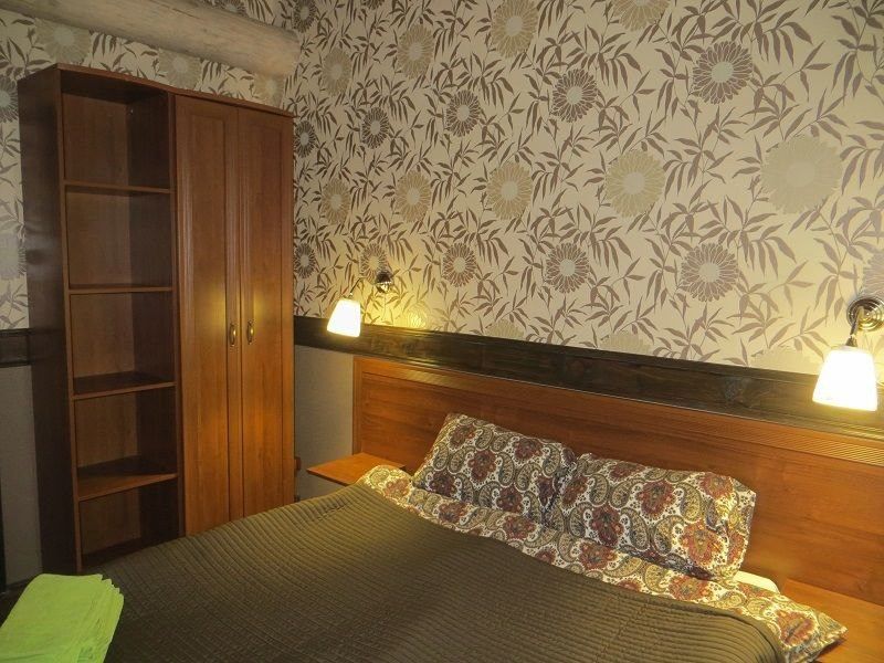 - Номер 5 — 18 кв.м., 1 двуспальная кровать, 2 тумбочки, французский балкон, шкаф-гардероб.