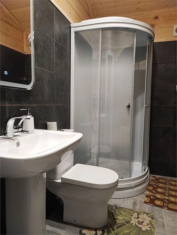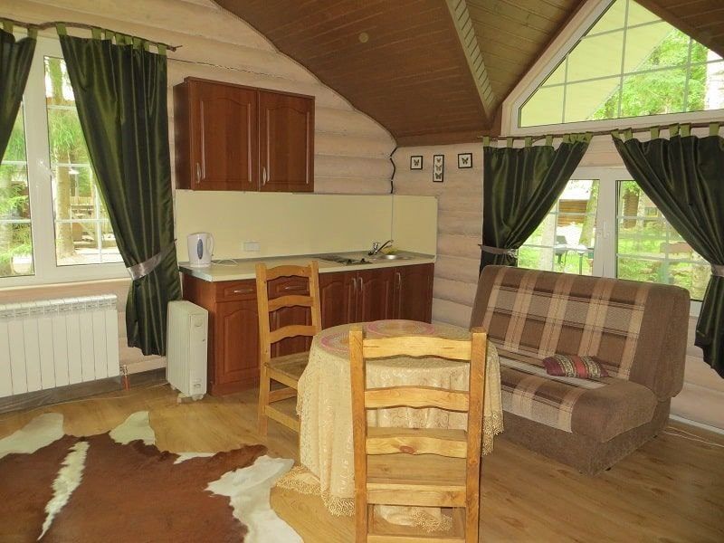 В домике, помимо кухни, на которой вы можете сами готовить, например, завтраки или романтический ужин, есть все необходимое для комфортной жизни: санузел и душ с горячей и холодной водой, теплые полы и регулируемое отопление, которое позволит держать нужную температуру зимой и летом. Вас ждут великолепная природа, оздоравливающий тело и душу чистейший воздух и развлечения для всей семьи.