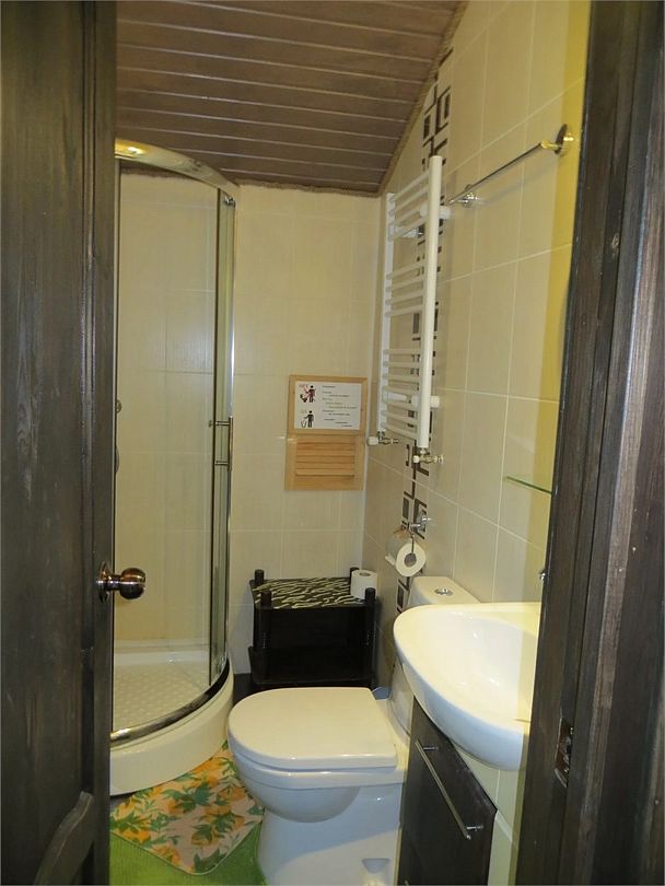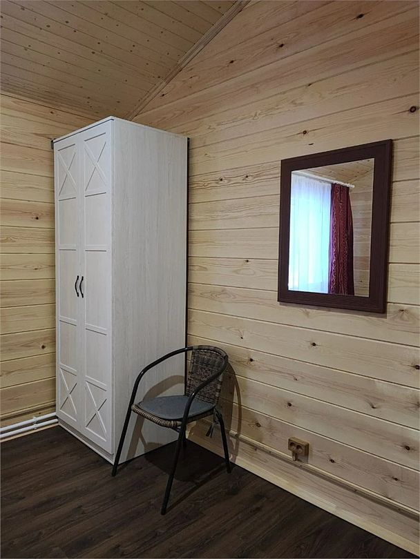 Есть душевая и санузел, горячая и холодная вода, теплые полы и регулируемое отопление, просторная веранда, где можно посидеть и попить утренний кофе или вечерний чай, и интерьер в спокойных, естественных тонах.