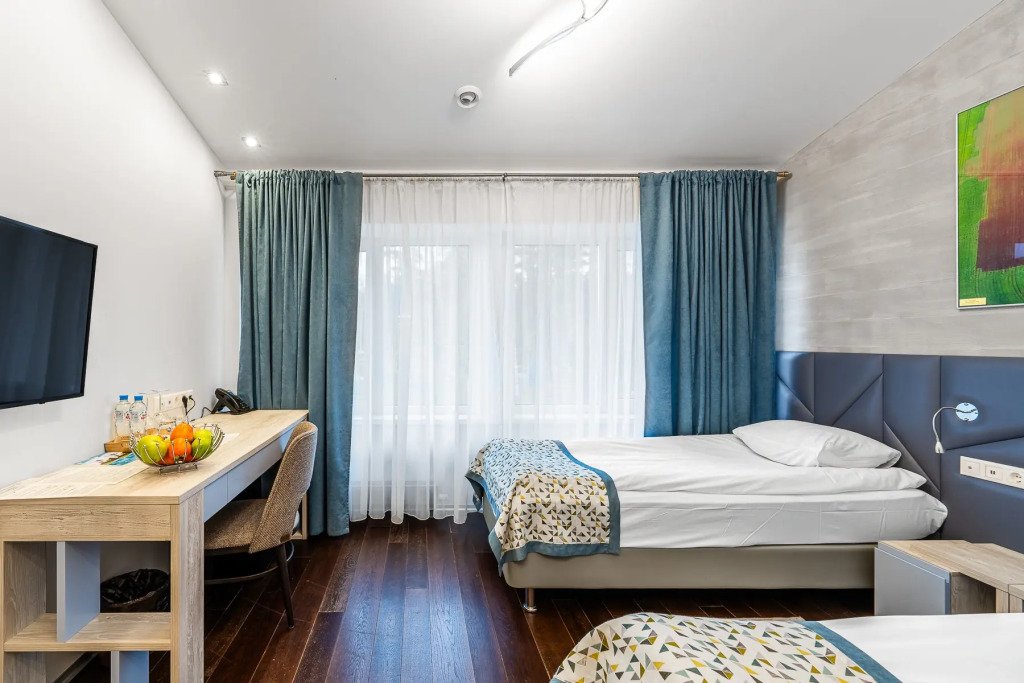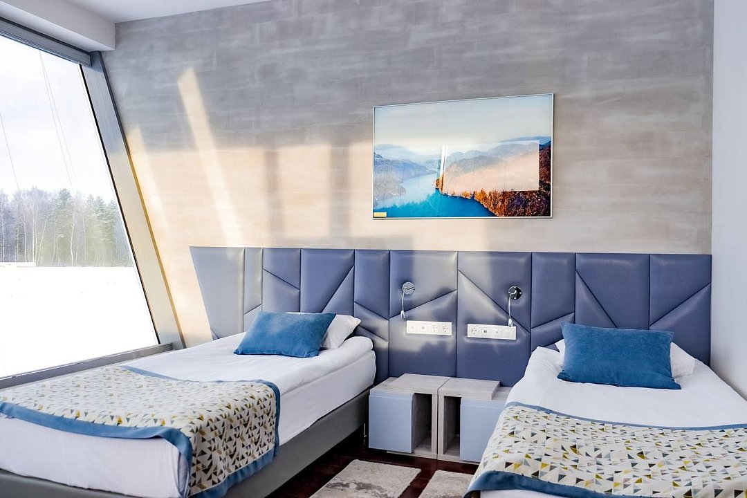 Номер с потрясающим видом на веревочный парк под открытым небом сделает Ваше пребывание в нашем отеле приятным. В номере одна или две раздельные кровати (при желании можно сдвинуть), рабочая зона, сейф, интернет, телевизор, кондиционер и холодильник-мини-бар.