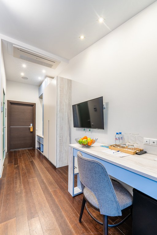 Просторный номер категории «Стандарт +» 18 м². Уютный номер для размещения одного или двух человек. Эксклюзивный дизайн и светлые тона создают неповторимую атмосферу сочетания стиля и комфорта.